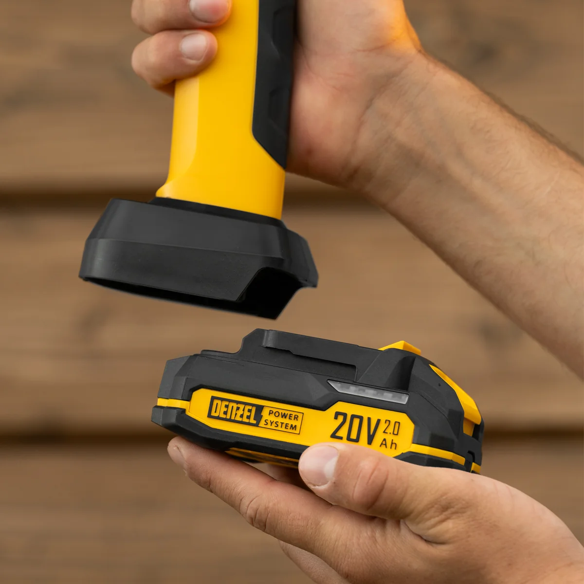 - Универсальность — аккумулятор совместим со всеми инструментами единой платформы Denzel Power System 20V.