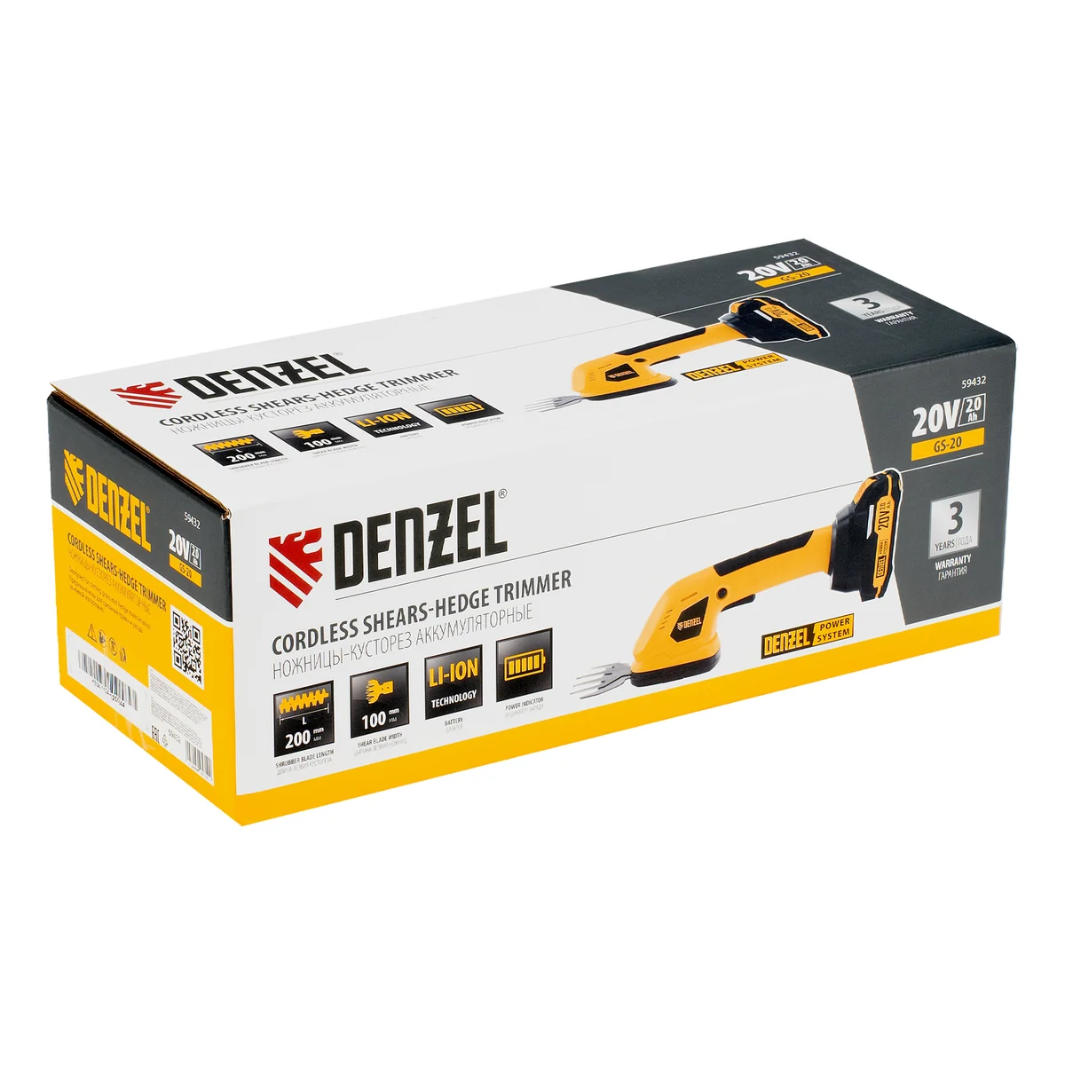 Ножницы-кусторез аккумуляторные GS-20, Li-Ion, 20 В Denzel 59432