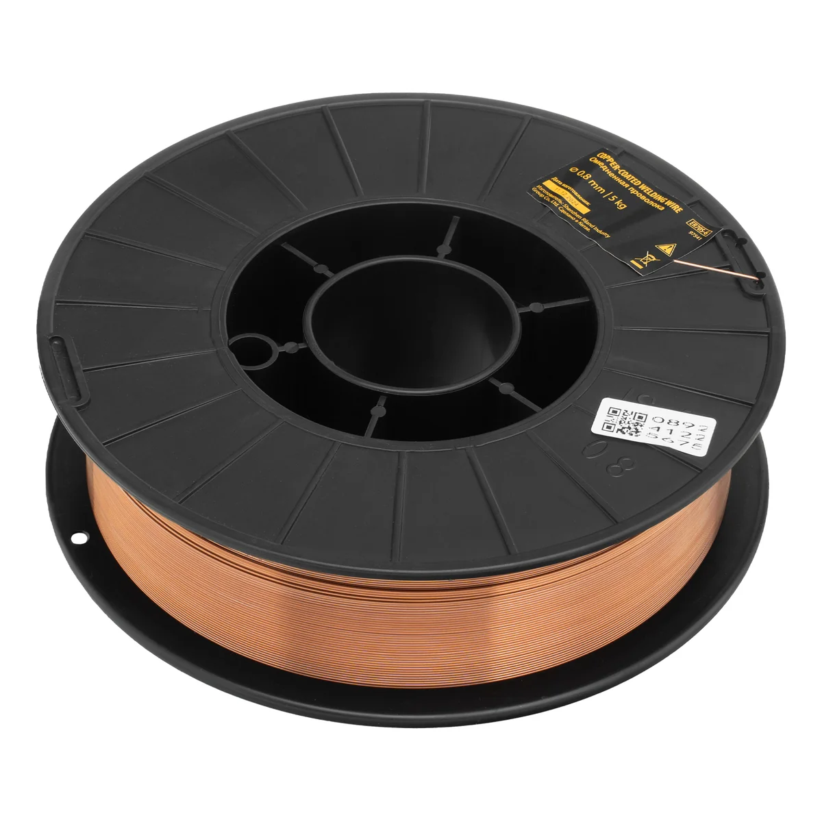 Омедненная проволока Denzel ER70S-6 97541 диаметром 0,8 мм и весом 5 кг, на катушке типа D200, предназначена для полуавтоматической сварки MIG/MAG углеродистых и низколегированных сталей в среде защитных газов. Необходима профессиональным сварщикам, пригодится также частному мастеру.