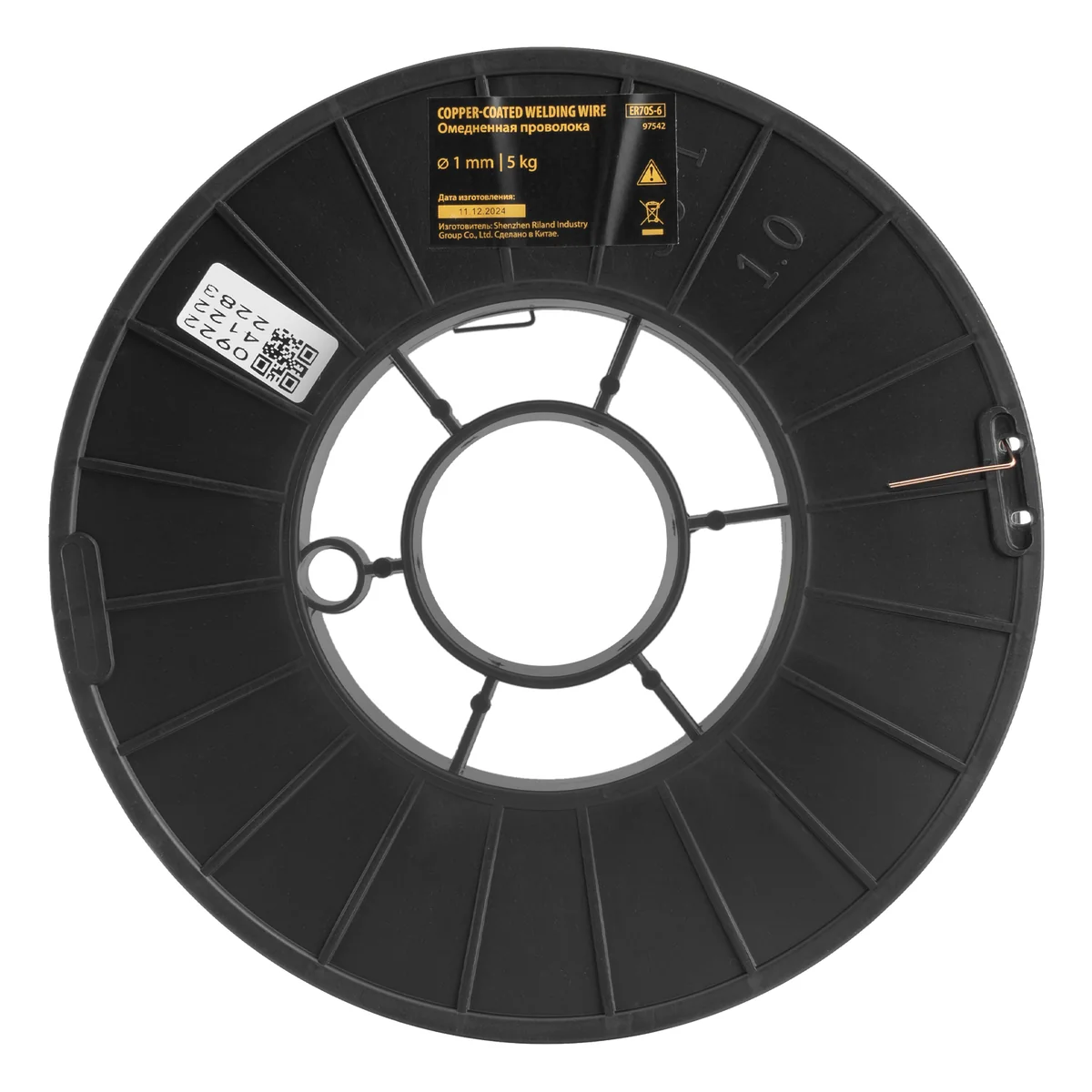 Омедненная проволока Denzel ER70S-6 97542 диаметром 1 мм и весом 5 кг, на катушке типа D200, предназначена для полуавтоматической сварки MIG/MAG углеродистых и низколегированных сталей в среде защитных газов. Необходима профессиональным сварщикам, пригодится также частному мастеру.