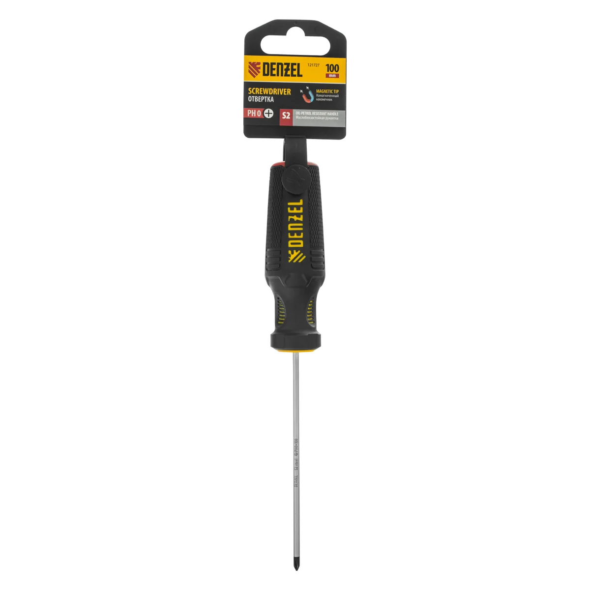 Отвертка Denzel 121727 с трехкомпонентной рукояткой, со стержнем из стали S2, длиной 100 мм, предназначена для закручивания и откручивания резьбового крепежа типа PH0. Высокоточный намагниченный шлиц избавляет мастера от необходимости придерживать винт или саморез рукой. Отвертка рекомендована для профессионального использования.