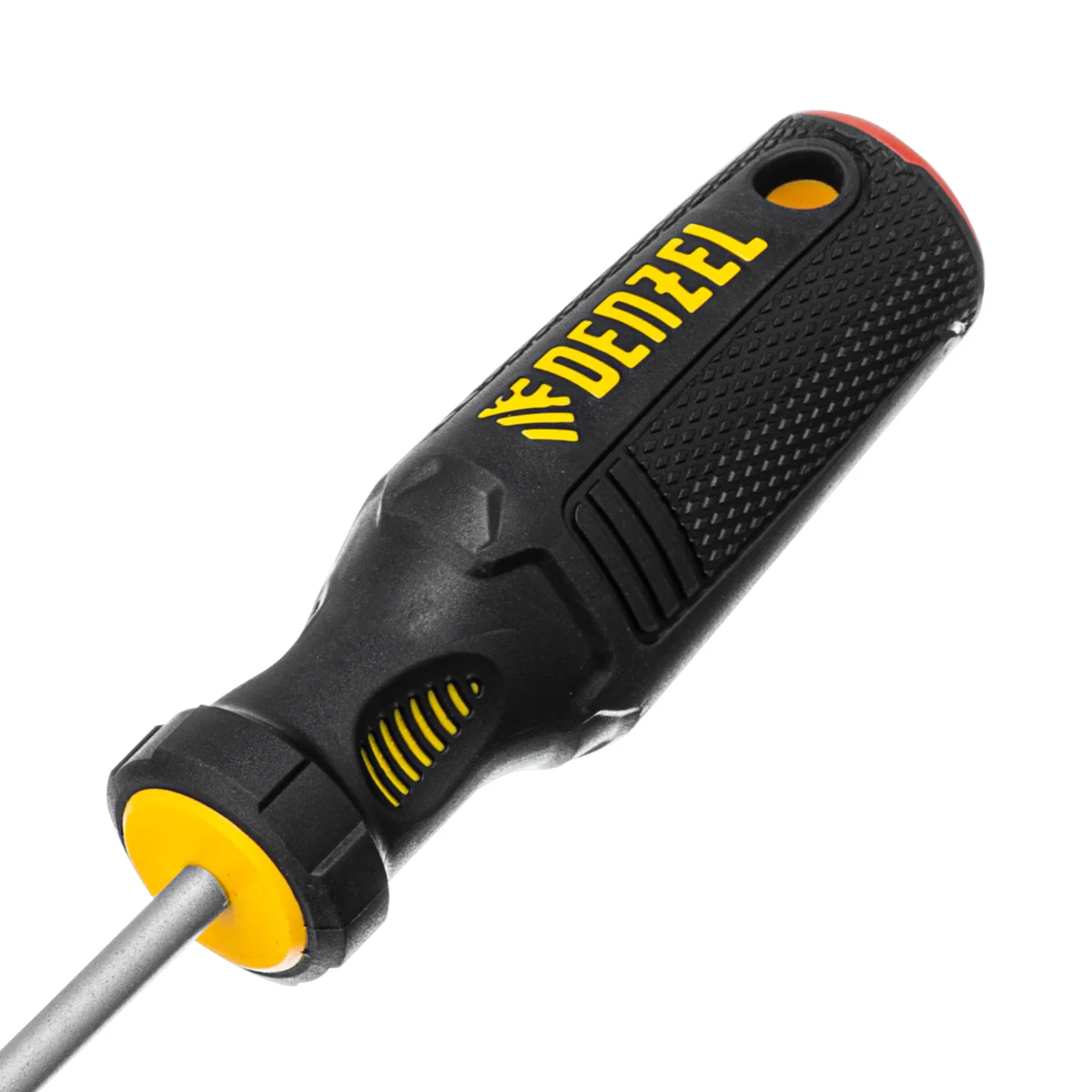 Отвертка Denzel 121767 с трехкомпонентной рукояткой, со стержнем из стали S2, длиной 150 мм, предназначена для закручивания и откручивания резьбового крепежа типа PH1. Высокоточный намагниченный шлиц избавляет мастера от необходимости придерживать винт или саморез рукой. Отвертка рекомендована для профессионального использования.