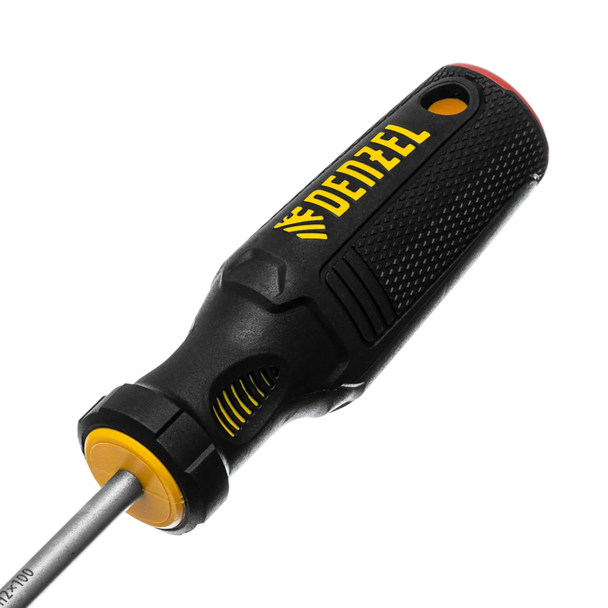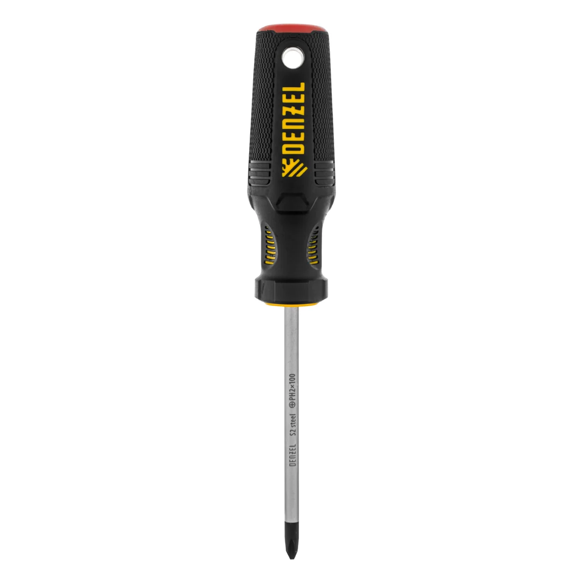 Отвертка Denzel 121787 с трехкомпонентной рукояткой, со стержнем из стали S2, длиной 100 мм, предназначена для закручивания и откручивания резьбового крепежа типа PH2. Высокоточный намагниченный шлиц избавляет мастера от необходимости придерживать винт или саморез рукой. Отвертка рекомендована для профессионального использования.