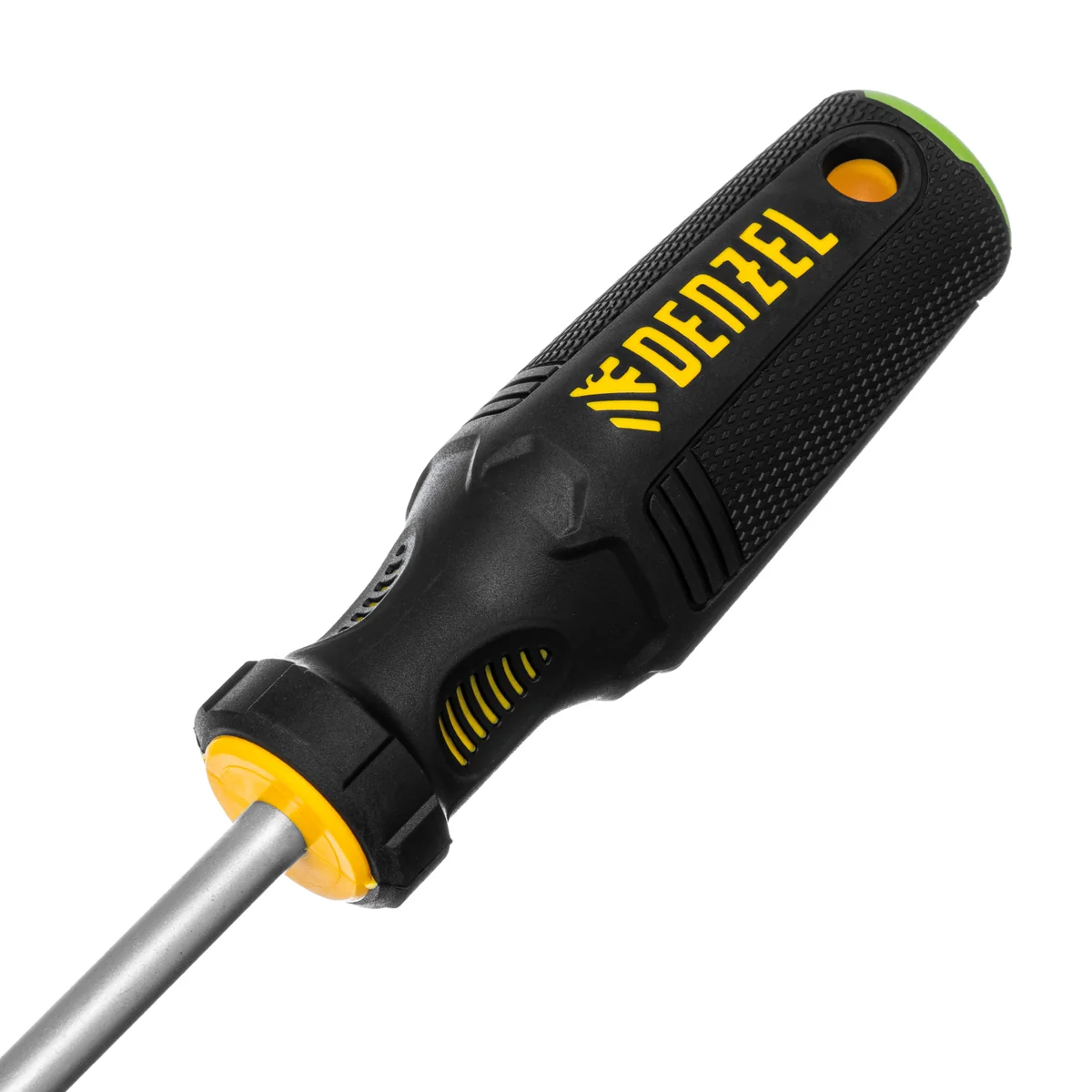 Отвертка Denzel 122097 с трехкомпонентной рукояткой, со стержнем из стали S2, длиной 150 мм, имеет шлиц PZ3 и предназначена для монтажных и демонтажных работ с резьбовыми соединениями типа Pozidriv. Благодаря намагниченному высокоточному шлицу отвертку с крепежом можно направлять одной рукой, удерживая другой закрепляемую деталь. Инструмент подходит для профессионального использования.