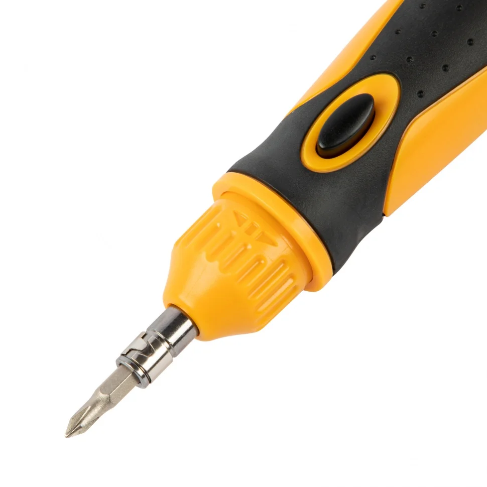 Реверсивная отвертка Gross 11609 mini с механизмом Smart Push комплектуется 11 сменными битами из стали CrMo для точных работ с маленькими деталями. С ее помощью можно отремонтировать электротехнику, часы, очки, детские игрушки, мелкие бытовые приборы и т.д. Отвертка станет незаменимым помощником в доме или мастерской. Реверсивный механизм повышает удобство и скорость работы, а руки при этом устают меньше.ПреимуществаПрочность и долговечность бит в комплекте обеспечивает износостойкая сталь CrMo, из которой они изготовлены.В комплекте предусмотрен защитный колпачок для защиты рабочей биты от повреждений при транспортировке и хранении.Наконечники бит намагничены, поэтому можно насадить крепеж на биту и освободить одну руку.Механизм Smart Push автоматически выдвигает битодержатель при нажатии кнопки на корпусе.Двухкомпонентная рукоятка имеет эргономичную форму, благодаря которой выполнять точные работы комфортно.