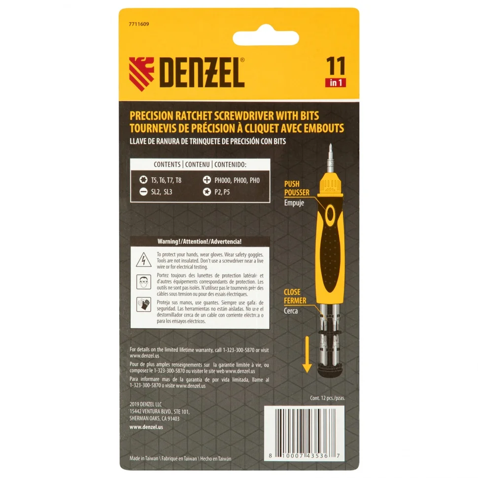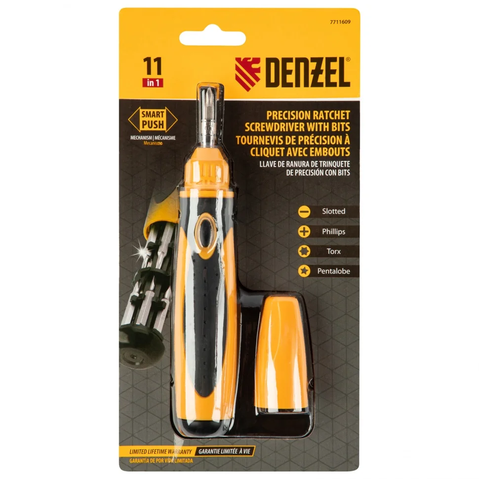 Отвертка реверсивная, механизм SmartPush mini 11 шт, CrMo // Denzel 7711609