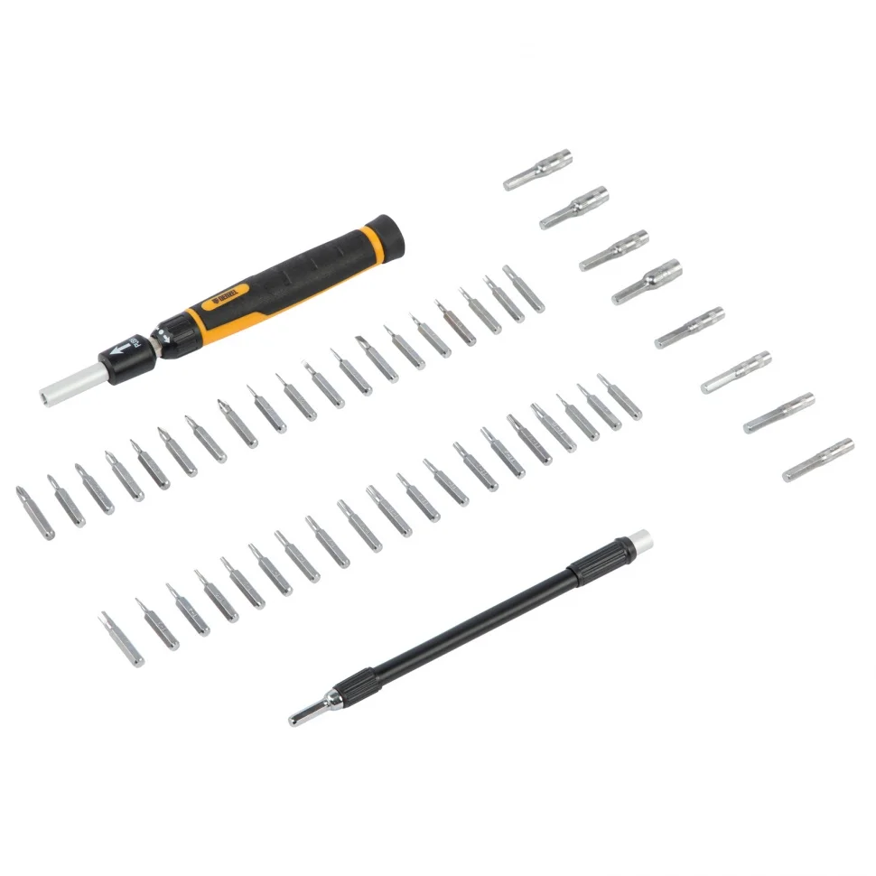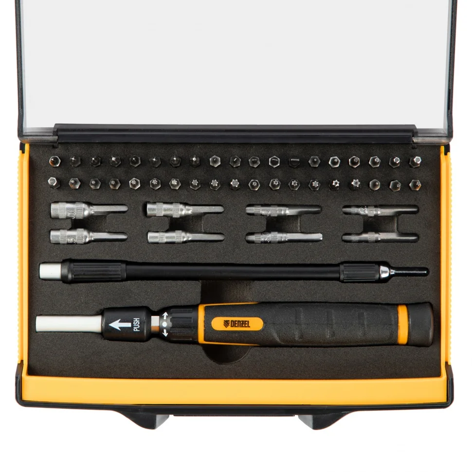 Отвертка с набором бит и торцевых головок для точных работ, гибкий привод, 48 шт, CrMo // Denzel 7711599