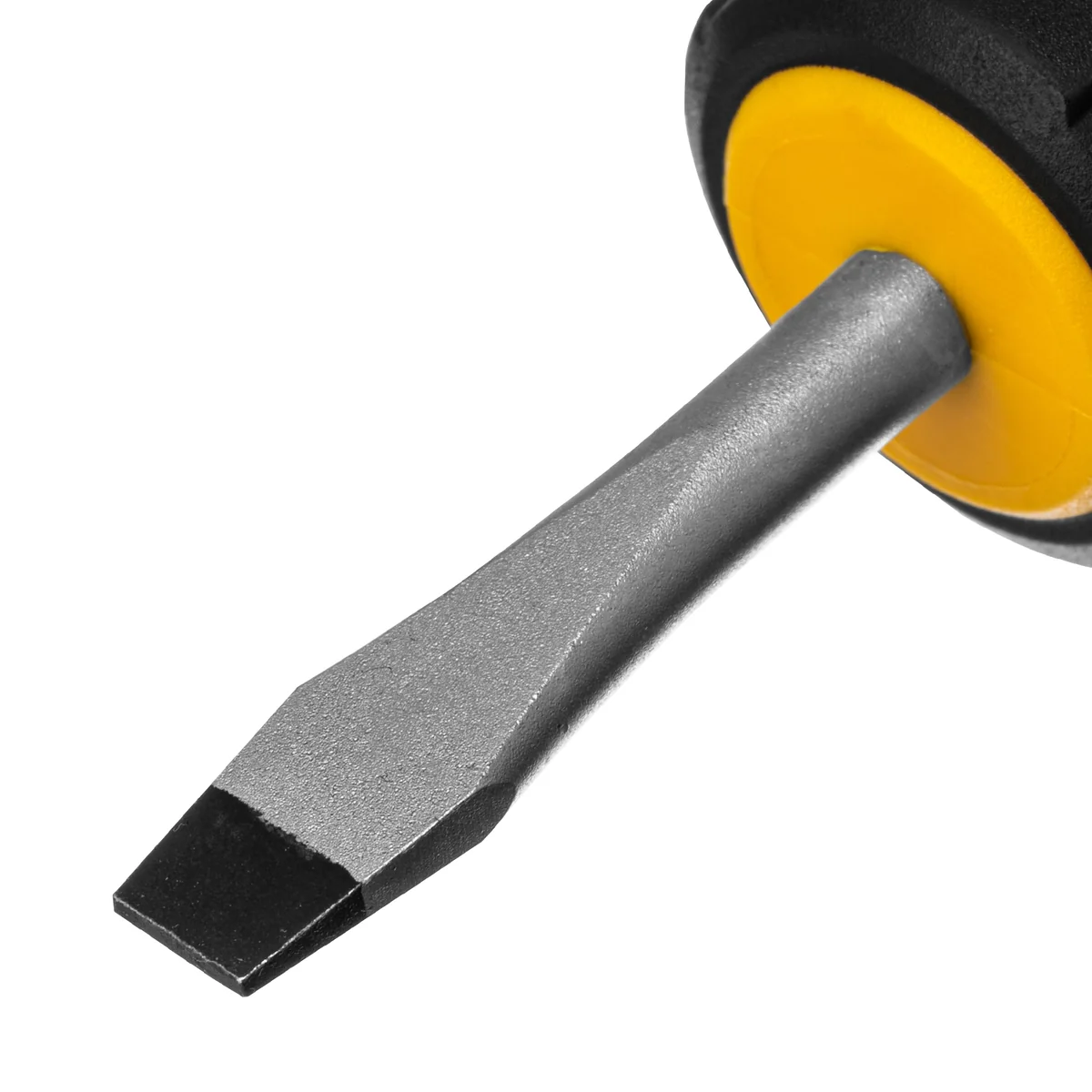Отвертка Denzel 122017 с трехкомпонентной рукояткой, со стержнем из стали S2, длиной 38 мм, предназначена для монтажа и демонтажа винтов и саморезов с прямым шлицем SL6. Удобна для работы в ограниченном пространстве. Высокоточный намагниченный шлиц крепко фиксируется в головке крепежа. Отвертка выдерживает интенсивное применение, предназначена для выполнения профессиональных ремонтных и монтажных работ.