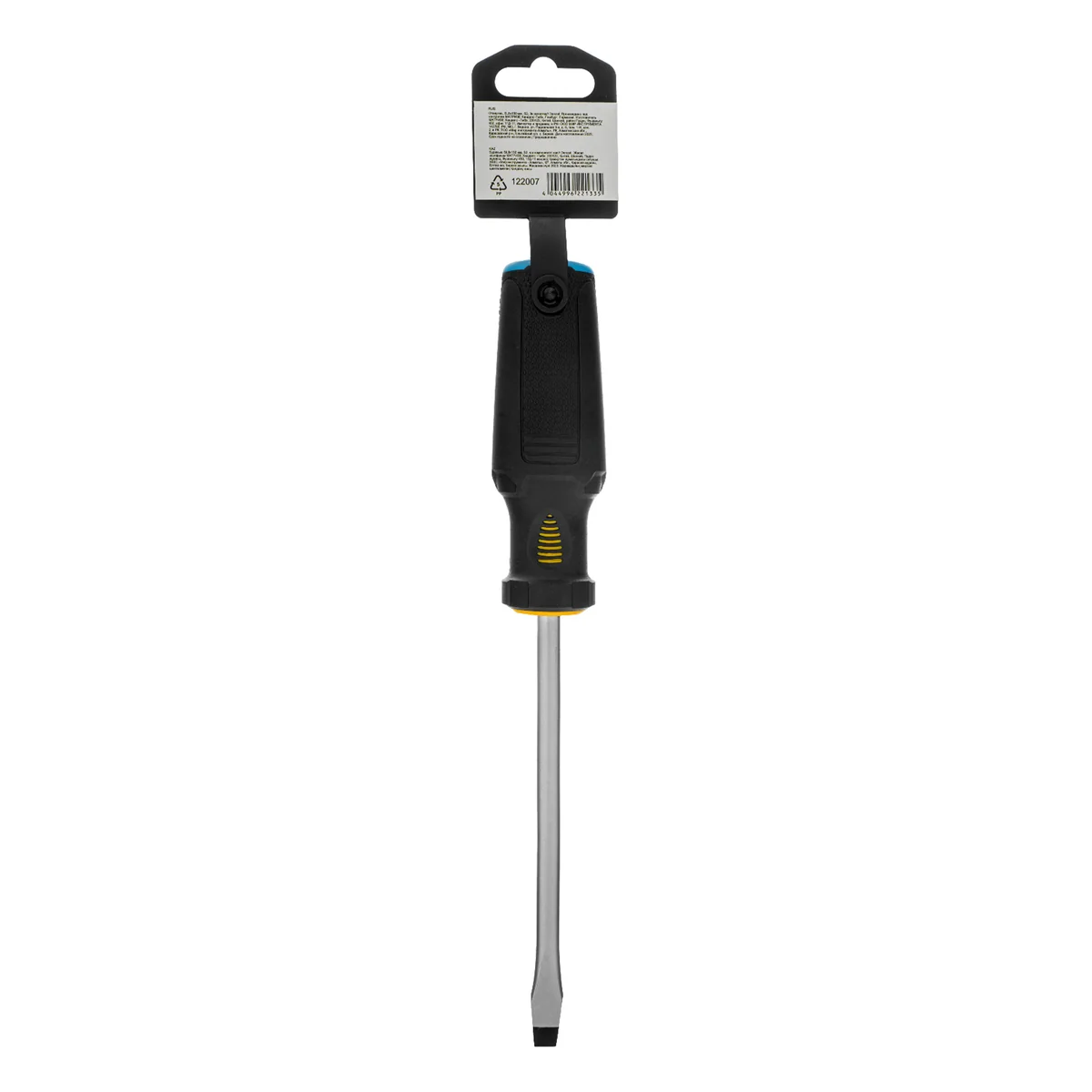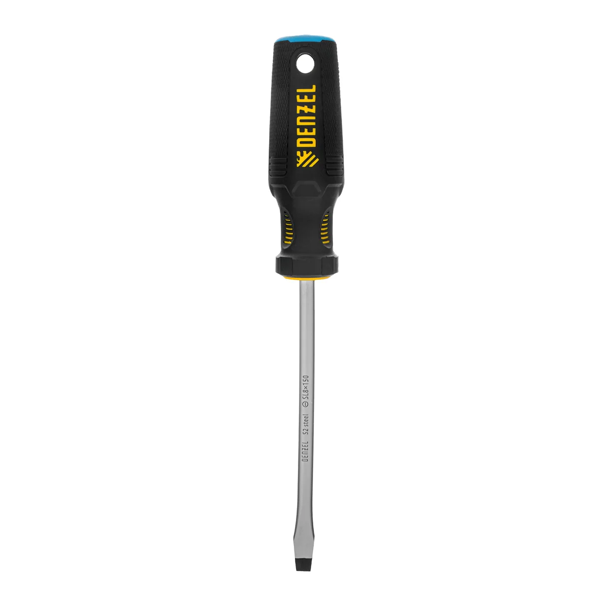 Отвертка Denzel 122007 с трехкомпонентной рукояткой, со стержнем из стали S2, длиной 150 мм, предназначена для монтажа и демонтажа винтов и саморезов с прямым шлицем SL8. Высокоточный намагниченный шлиц крепко фиксируется в головке крепежа. Отвертка выдерживает интенсивное применение, предназначена для выполнения профессиональных ремонтных и монтажных работ.