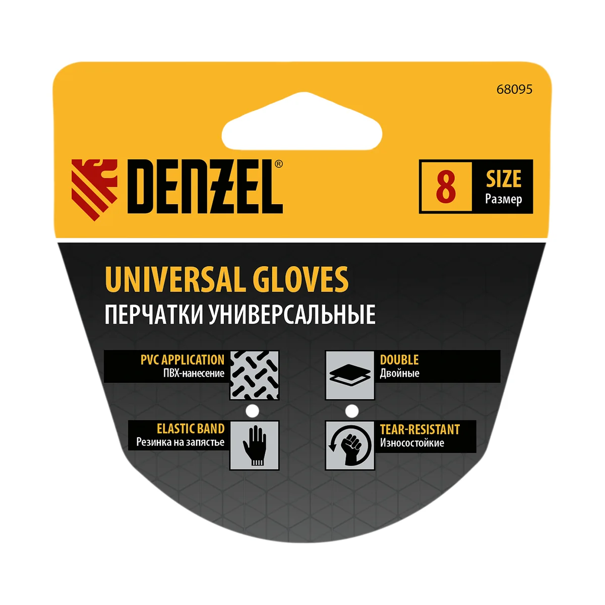Перчатки универсальные, двойные, ПВХ нанесение, размер 8 Denzel 68095