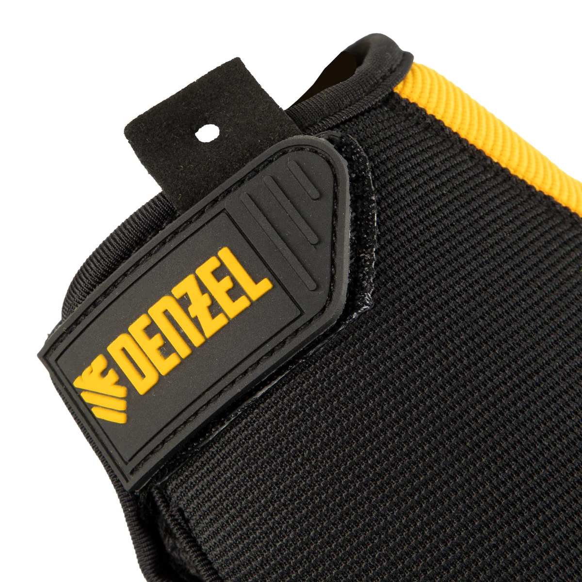 Универсальные перчатки Denzel 67993 размера 9, с манжетами на «липучке», используются для работы со слесарным инструментом. Надежно защищают кожу рук от царапин и мозолей. Пригодятся в мастерской, дома или в гараже.ПреимуществаИзносостойкость — перчатки устойчивы к истиранию благодаря прочному материалу (сочетание полиэстера, спандекса, полиамида, нейлона, полиуретана и поливинилхлорида).Плотная посадка — манжеты на «липучках» обеспечивают надежную фиксацию.Комфортная эксплуатация — перчатки анатомического кроя плотно облегают кисти рук и не стесняют движения пальцев.