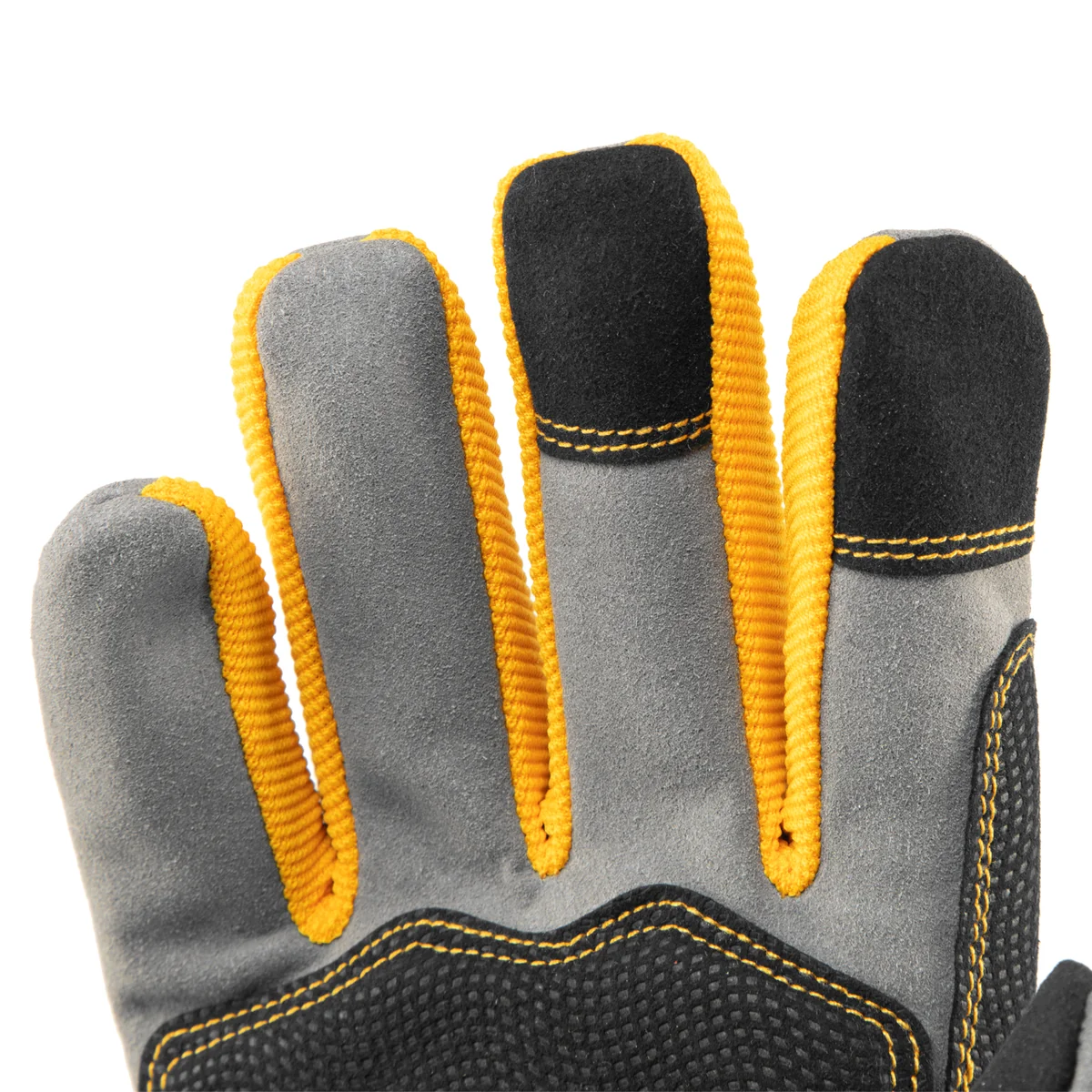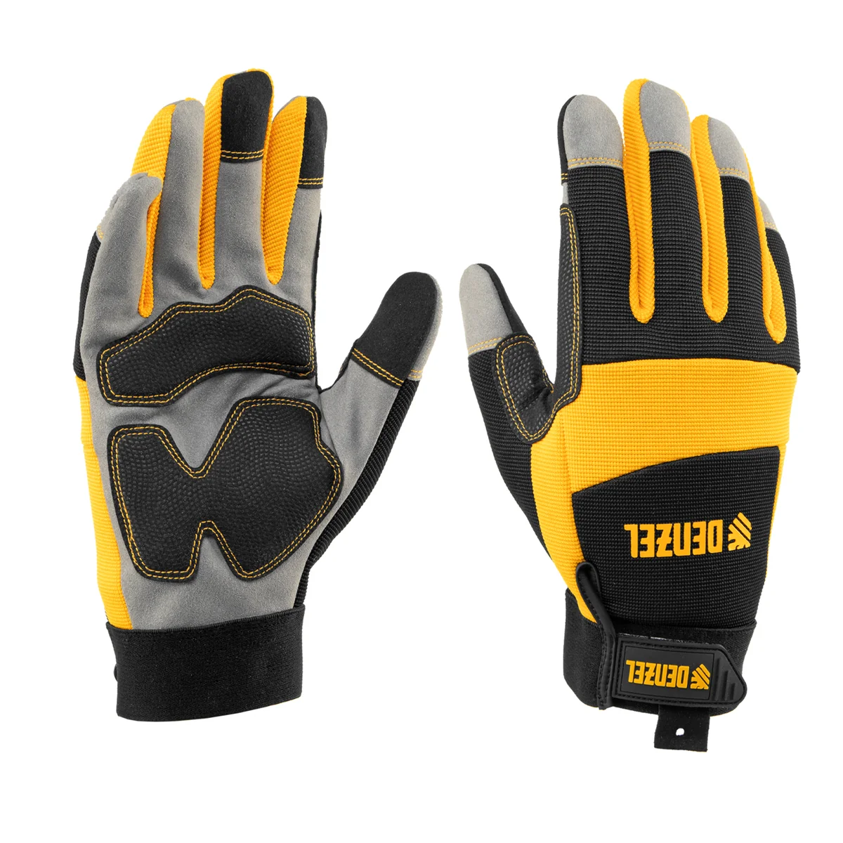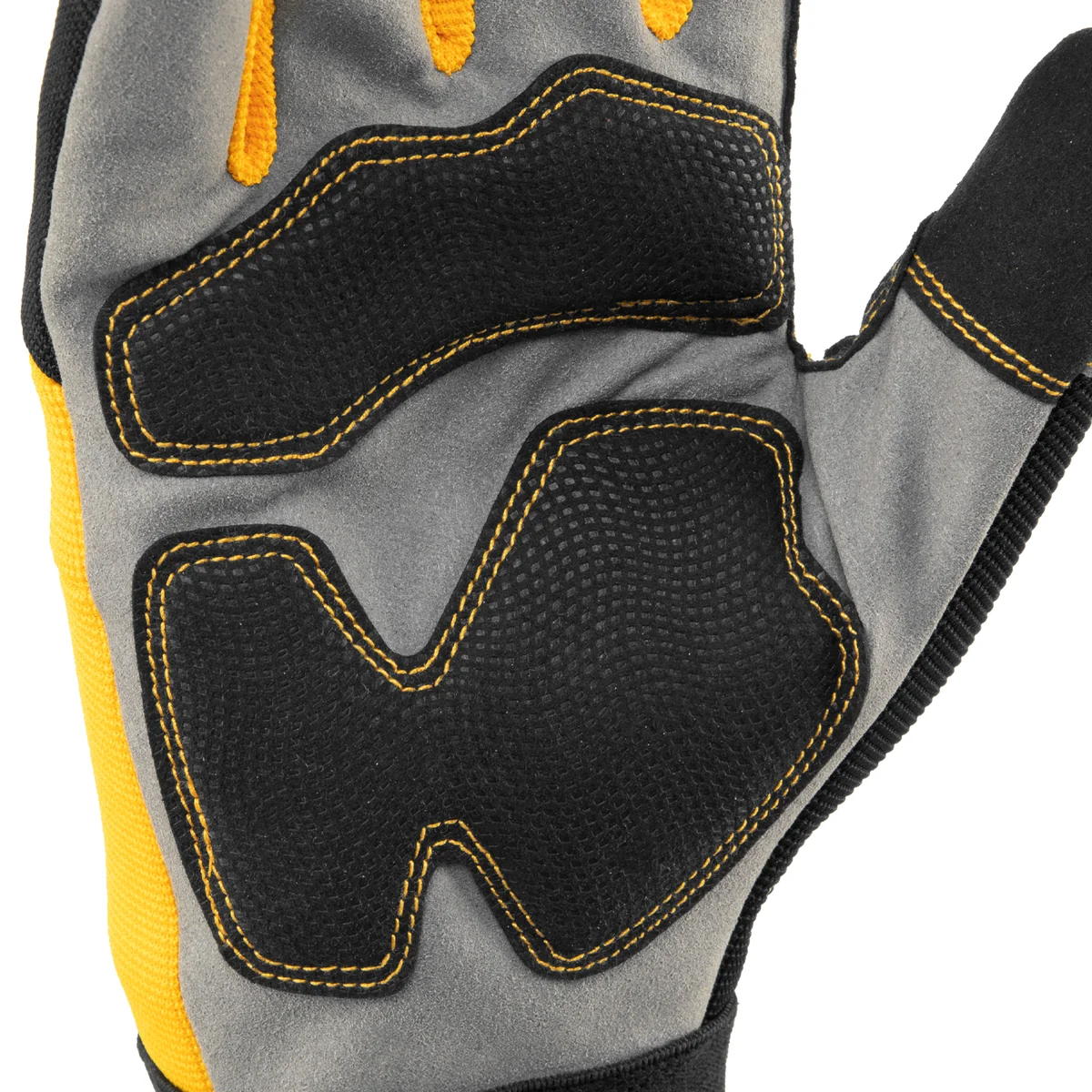 Универсальные усиленные перчатки Denzel 67990 размера 9 используются для работы со слесарным инструментом. Надежно защищают кожу рук от царапин и мозолей. Пригодятся частному мастеру и профессионалу в мастерской, дома или в гараже.ПреимуществаИзносостойкость — перчатки устойчивы к истиранию благодаря прочному материалу (сочетание полиэстера, спандекса, полиамида, нейлона, полиуретана и поливинилхлорида).Дополнительная защита — в местах, испытывающих наибольшее трение, имеются специальные накладки.Дополнительные возможности — в перчатках можно нажимать на сенсорный экран, их не нужно снимать для ответа на звонок или сообщение.Плотная посадка — манжеты на «липучках» обеспечивают надежную фиксацию.Комфортная работа — перчатки анатомического кроя плотно облегают кисти рук и не стесняют движения пальцев.
