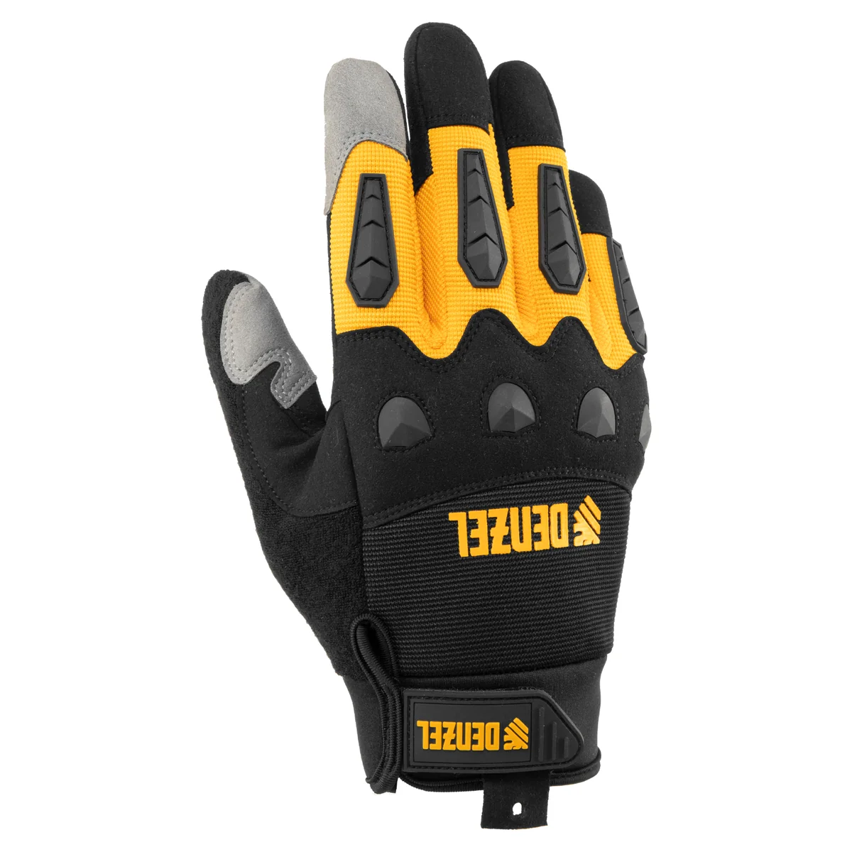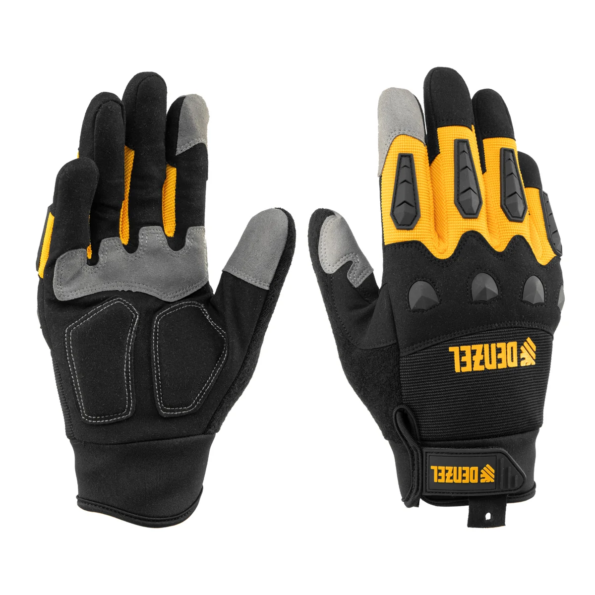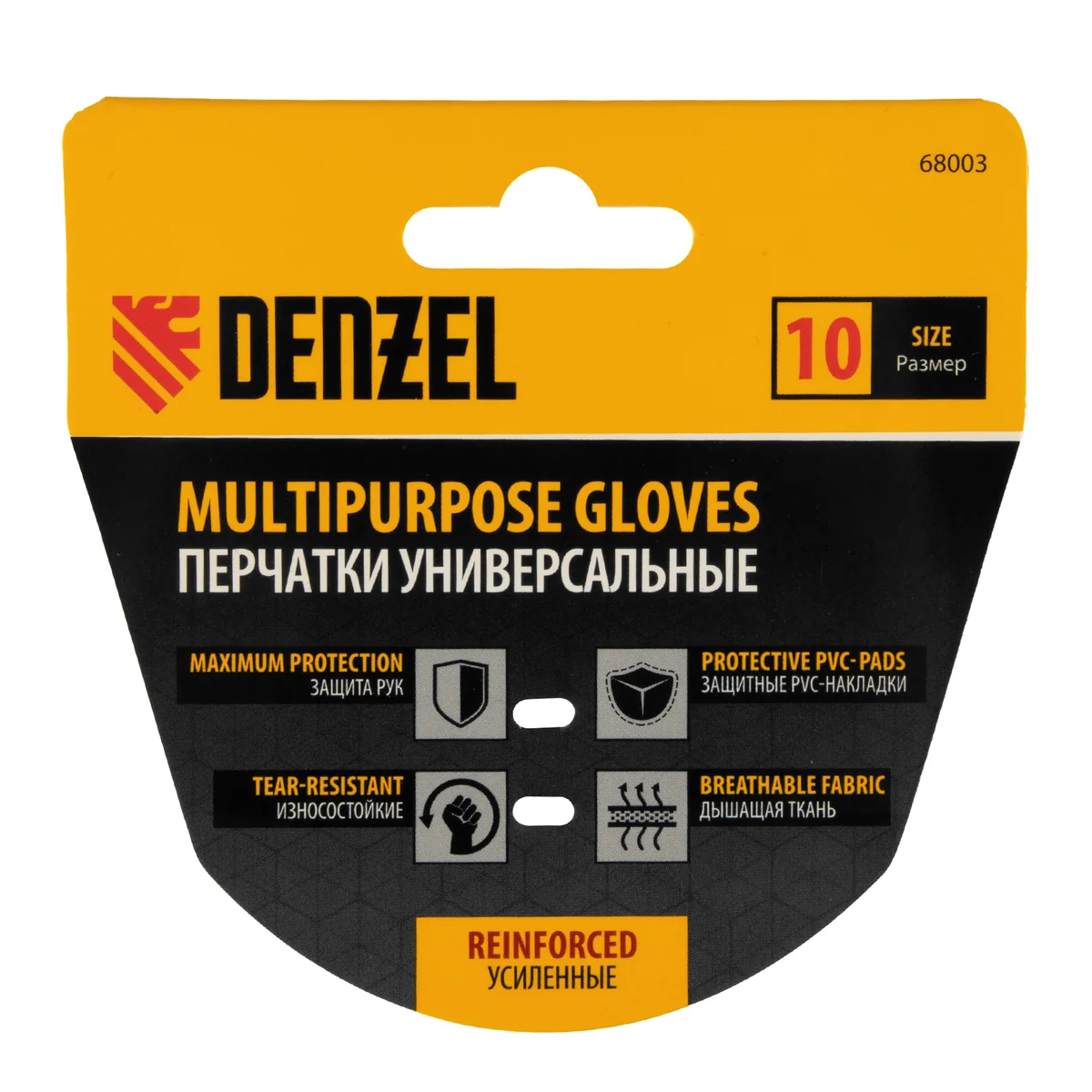 Универсальные усиленные перчатки Denzel 68003 размера 10, с защитными накладками, предотвращают появление царапин и мозолей во время работы с ручным инструментом. Анатомически скроенные, они плотно облегают кисти рук, не сковывая движения пальцев. Перчатки используются при выполнении строительных, ремонтных, слесарных и столярных работ.ПреимуществаПрочность — перчатки изготовлены из полиэстера, неопрена, полиамида и других материалов, устойчивых к разрыву истиранию.Защита от мозолей — на ладонной части имеются специальные накладки.Забота о суставах — пальцы усилены защитными PVC-накладками.Манжеты на «липучке» — перчатки надежно фиксируются на запястьях и не сползают во время работы.