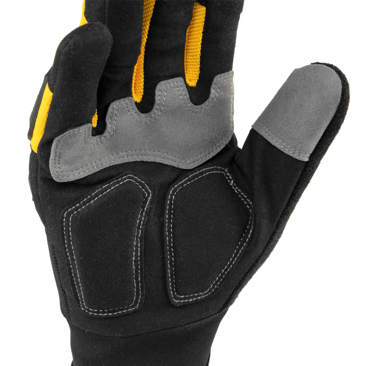 Универсальные усиленные перчатки Denzel 68002 размера 9, с защитными накладками, предотвращают появление царапин и мозолей во время работы с ручным инструментом. Анатомически скроенные, они плотно облегают кисти рук, не сковывая движения пальцев. Перчатки используются при выполнении строительных, ремонтных, слесарных и столярных работ.ПреимуществаПрочность — перчатки изготовлены из полиэстера, неопрена, полиамида и других материалов, устойчивых к разрыву истиранию.Защита от мозолей — на ладонной части имеются специальные накладки.Забота о суставах — пальцы усилены защитными PVC-накладками.Манжеты на «липучке» — перчатки надежно фиксируются на запястьях и не сползают во время работы.