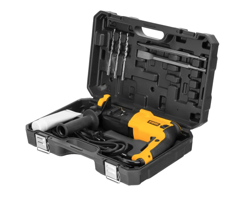 - Удобное хранение и транспортировка — перфоратор и аксессуары упакованы в прочный кейс.