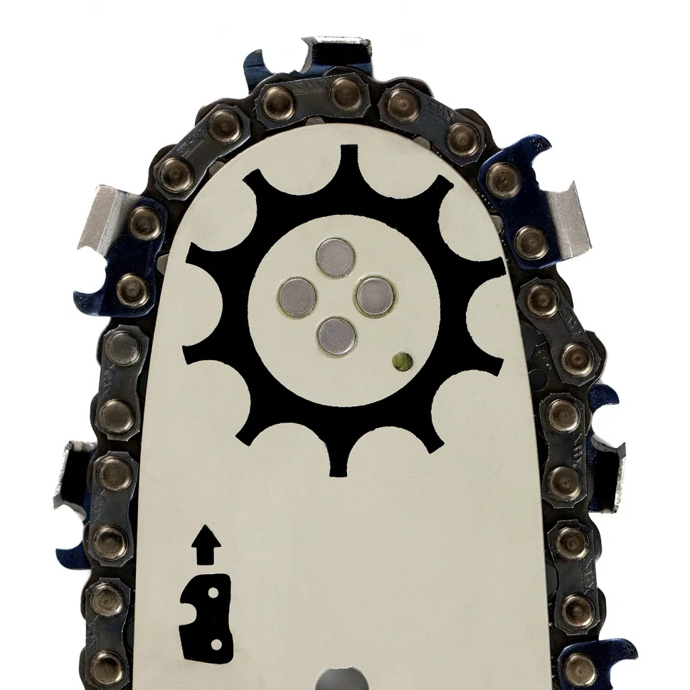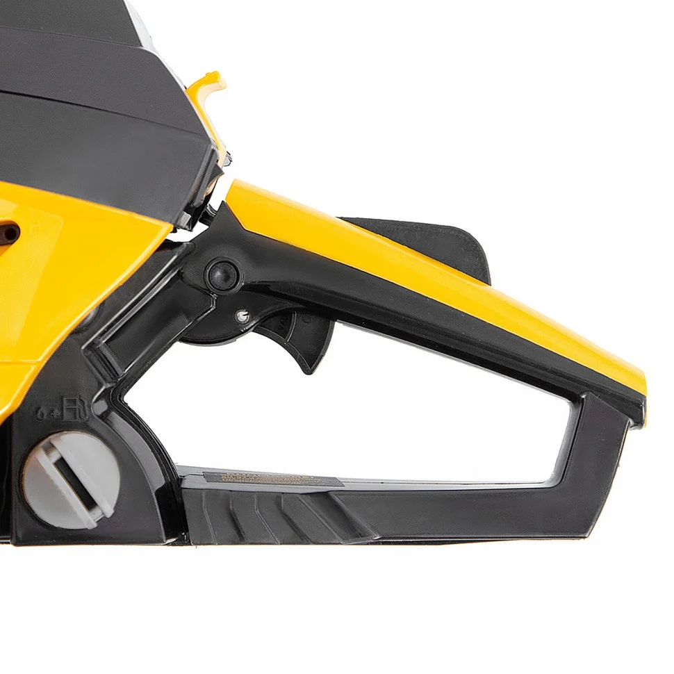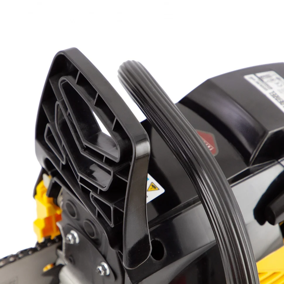 - Безопасность пользователя — специальный щиток и автоматический тормоз цепи уменьшают риск получения травм при отскоке пилы, также предусмотрена защита от случайного пуска.