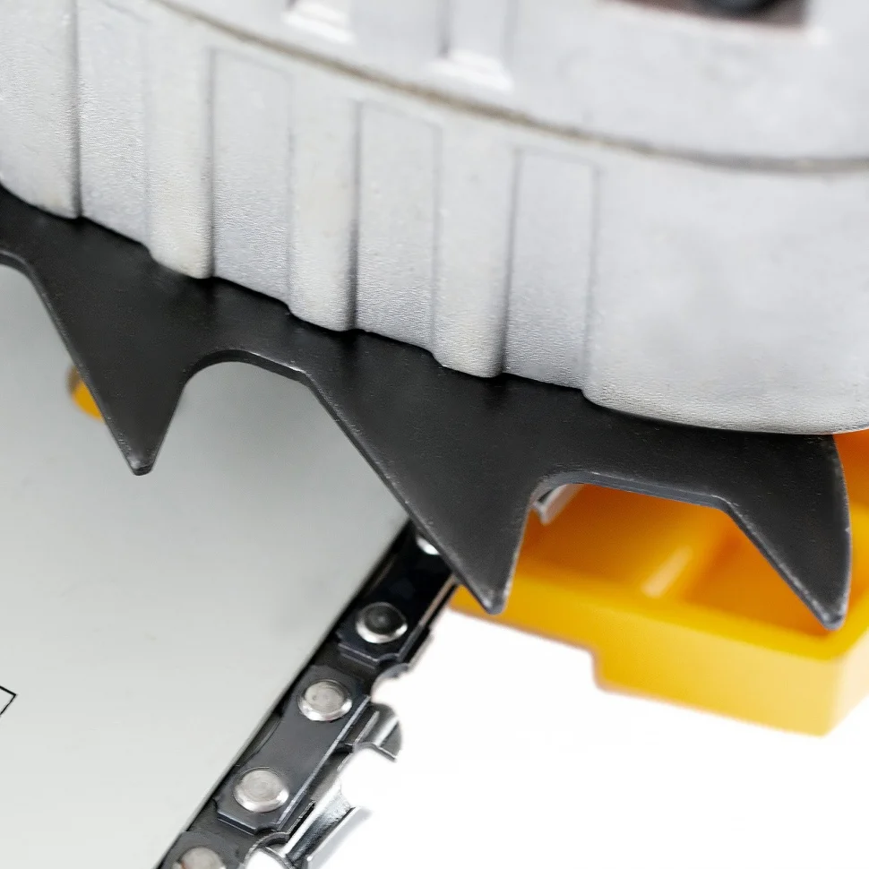 - Стальной зубчатый упор — пилу удобно фиксировать в процессе работы для повышения качества реза и уменьшения отдачи.