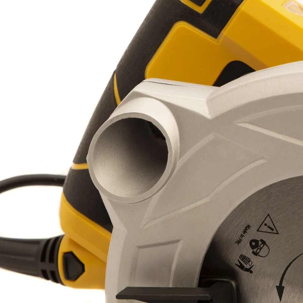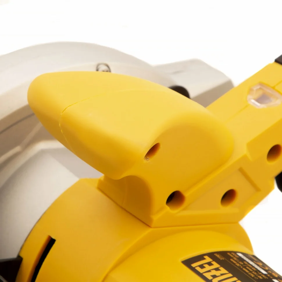 - Быстрая смена оснастки — с помощью кнопки блокировки шпинделя и ручки отвода защитного кожуха даже начинающий мастер сможет без труда заменить пильный диск.