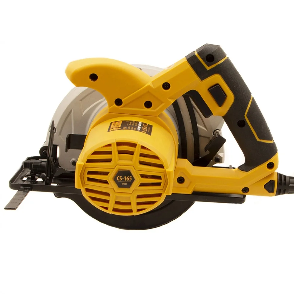 Циркулярная пила Denzel CS-165 мощностью 1200 Вт с пильным диском диаметром 165 мм предназначена для реза листового пиломатериала, ДСП, ДВП, а также для раскроя фанеры. Самая компактная из линейки Denzel CS, она весит всего 3,6 кг — это значительно снижает нагрузку на руки мастера и позволяет управлять инструментом одной рукой.;Двигатель мощностью 1,2 кВт обеспечивает частоту вращения пильного диска 5500 об/мин. Специальный рычаг-фиксатор позволяет легко регулировать глубину пропила от 0 до 55 мм.