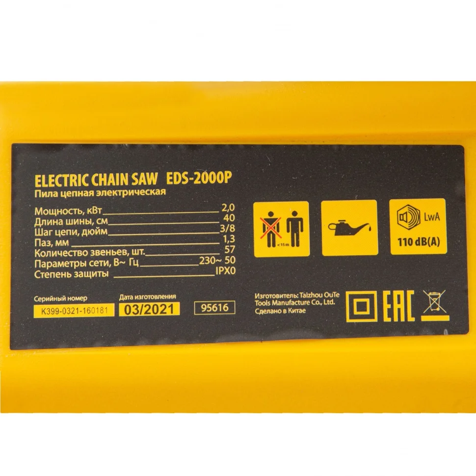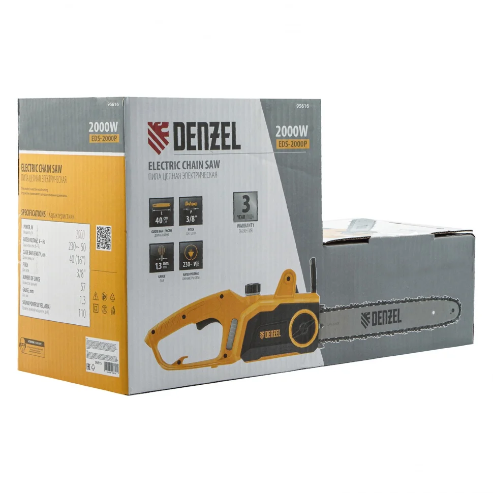Пила цепная электрическая EDS-2000P, 2 кВт,поперечная, шина 40 см, шаг 3/8, паз 1.3 мм, 57 звеньев Denzel 95616