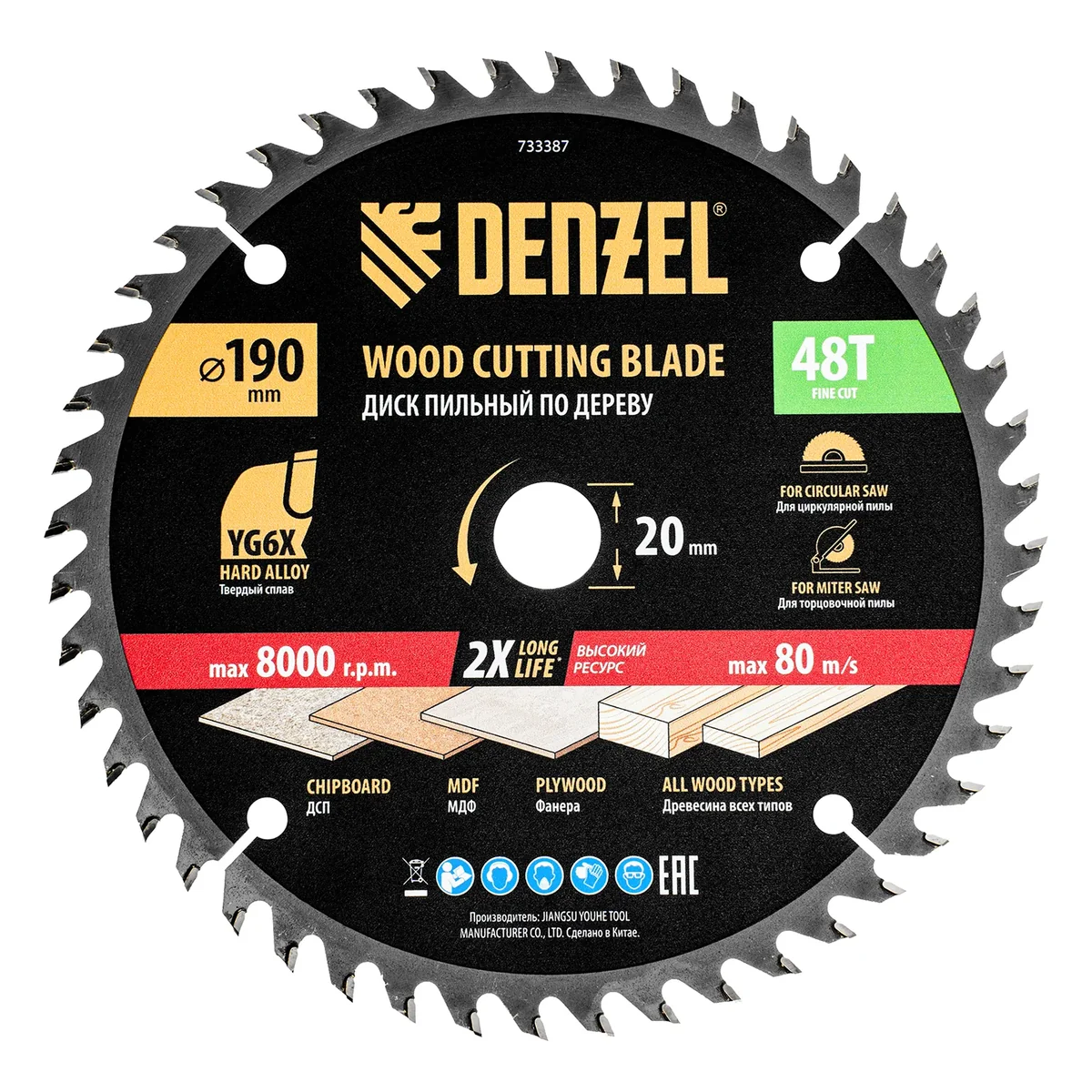 Пильный диск Denzel 733387 диаметром 190 x 20 мм, с 48 зубьями, предназначен для продольного и поперечного распила твердой и мягкой древесины, фанеры, МДФ, ДСП. 48 зубьев типа ATB с режущими пластинами оптимальной геометрии обеспечивают качественный рез. Тип реза — стандартный. Режущие пластины из твердого сплава YG6X сохраняют рабочие свойства при интенсивном использовании. Диск устанавливается на циркулярную, торцовочную пилу или на распиловочный станок. В комплект поставки входит переходное кольцо с 20 на 16 мм, что позволяет изменить посадочный размер и расширяет возможности использования диска.