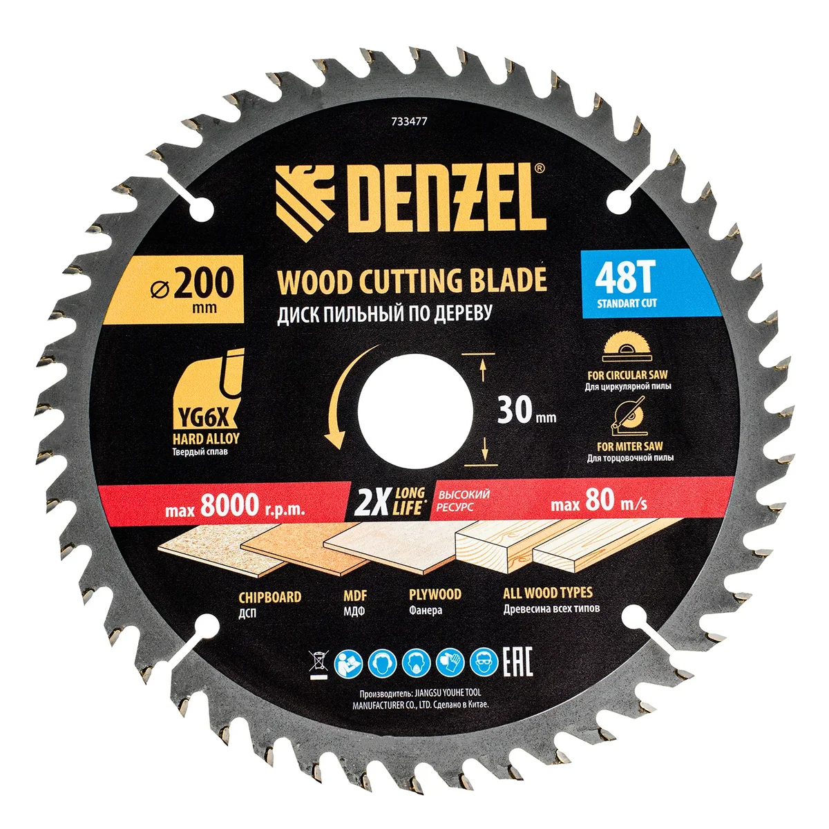 Пильный диск Denzel 733477 диаметром 200 x 30 мм, с 48 зубьями, предназначен для продольного и поперечного распила твердой и мягкой древесины, фанеры, МДФ, ДСП. 48 зубьев типа ATB с режущими пластинами оптимальной геометрии обеспечивают качественный рез. Тип реза — стандартный. Режущие пластины из твердого сплава YG6X сохраняют рабочие свойства при интенсивном использовании. Диск устанавливается на циркулярную, торцовочную пилу или на распиловочный станок. В комплект поставки входит переходное кольцо с 30 на 20 мм, что позволяет изменить посадочный размер и расширяет возможности использования диска.
