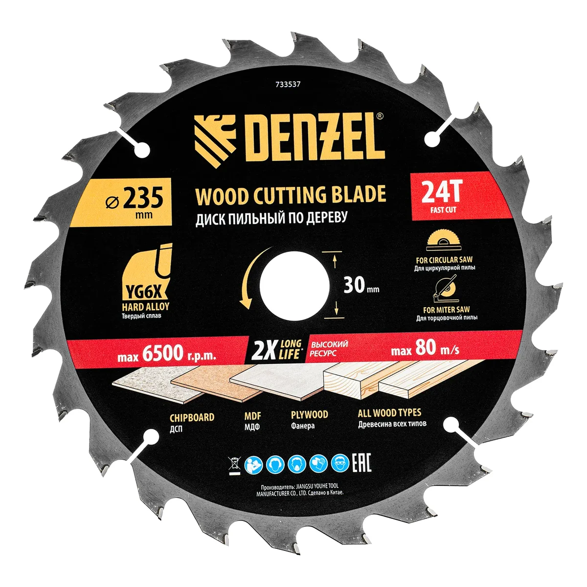 Пильный диск Denzel 733537 диаметром 235 x 30 мм, с 24 зубьями, предназначен для продольного и поперечного распила твердой и мягкой древесины, фанеры, МДФ, ДСП. 24 зуба типа ATB с режущими пластинами оптимальной геометрии обеспечивают быстрый рез. Режущие пластины из твердого сплава YG6X сохраняют рабочие свойства при интенсивном использовании. Диск устанавливается на циркулярную, торцовочную пилу или на распиловочный станок. В комплект поставки входит переходное кольцо с 30 на 20 мм, что позволяет изменить посадочный размер и расширяет возможности использования диска.