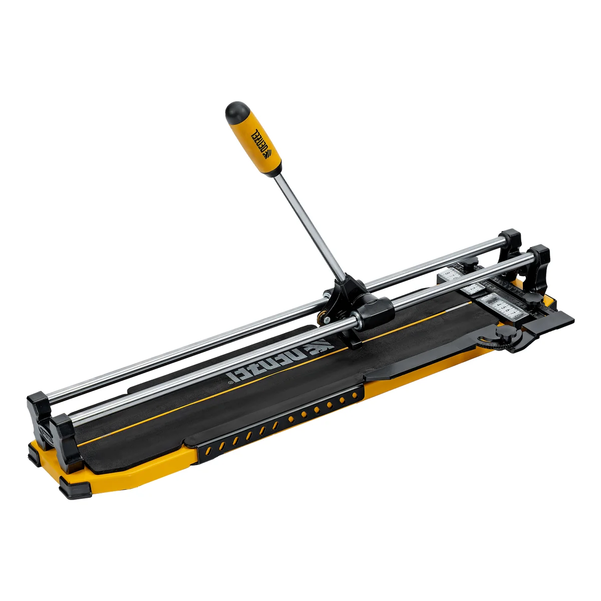 - Удобная работа — благодаря противоскользящим накладкам плиткорез не смещается даже на гладких поверхностях.