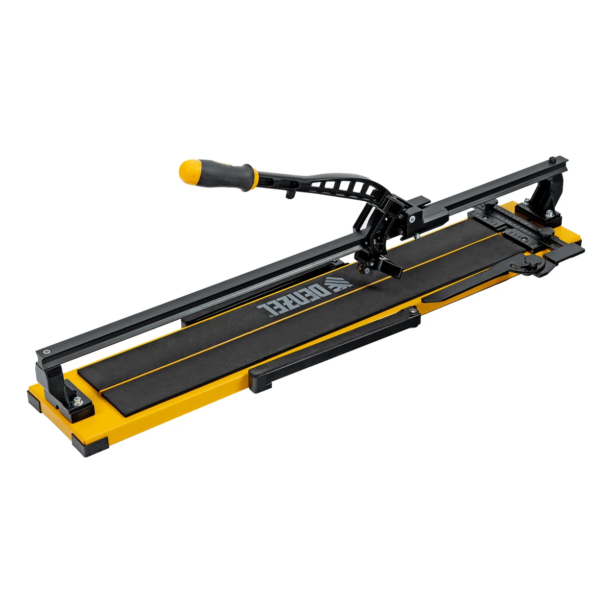 - Удобная работа — благодаря противоскользящим накладкам плиткорез не смещается даже на гладких поверхностях.