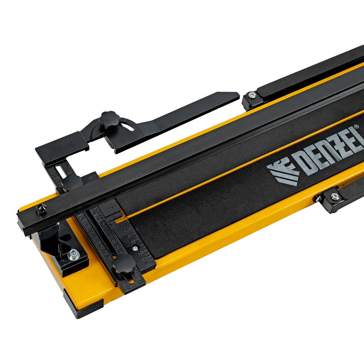Ручной плиткорез Denzel 877016 с рельсовой направляющей и стальной станиной, с кареткой на подшипниках и усиленной рукояткой-пеналом, предназначен для прямой и диагональной резки керамической плитки и керамогранита длиной до 800 мм и толщиной до 16 мм. Раздвижные упоры упрощают работу с плиткой большого размера. Инструмент используется для проведения отделочных работ.