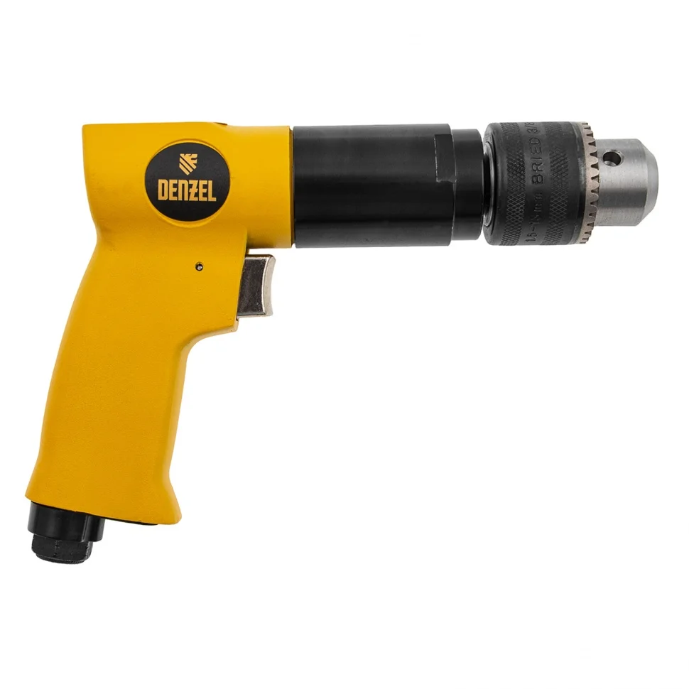 Пневматическая дрель Denzel PD500 57478 с ключевым патроном 1,5-13 мм работает со скоростью 500 об/мин при среднем расходе сжатого воздуха 114 л/мин. Используется для сверления отверстий в древесине, металле и пластике, закручивания и откручивания резьбовых крепёжных элементов. Дрель может применяться в строительстве, монтажных работах, ремонте и обслуживании автомобилей, на малых производствах и в домашних мастерских.Инструмент предназначен для работы под давлением 6,3 бар, расход воздуха не превышает 200 л/мин, поэтому в качестве источника сжатого воздуха подойдет компрессор средней мощности. Во время работы не забывайте использовать специальное масло ISO 46, которое можно добавлять как напрямую в инструмент, так и с помощью блока подготовки воздуха Denzel 57469, включающего в себя лубрикатор для автоматической подачи масла.ПреимуществаШирокий диапазон работ — при использовании специальной оснастки дрель может применяться для зачистки различных поверхностей, зенкования и развертывания отверстий.Надежная фиксация оснастки — кулачковый ключевой патрон обеспечивает прочное крепление сверл диаметром 1,5-13 мм.Наличие реверса — для легкого выкручивания крепежей и извлечения заклинившего сверла дрель оснащена функцией обратного движения.Удобное использование — компактный прорезиненный корпус позволяет выполнять работы в труднодоступных местах.Надежный захват — нескользящая рукоятка эргономичной формы обеспечивает комфортную работу и снижает отдачу от инструмента.Дополнительная рукоятка — мастер сможет повернуть и зафиксировать ее в любом удобном положении для более точного позиционирования сверла и исключения риска его смещения в процессе работы.Долговечность — простая и прочная конструкция обеспечивает повышенную износостойкость пневмодрели.Полный комплект поставки — штуцер и ключ для патрона прилагаются к инструменту.Гарантия 3 года — качество инструмента подтверждено производителем.
