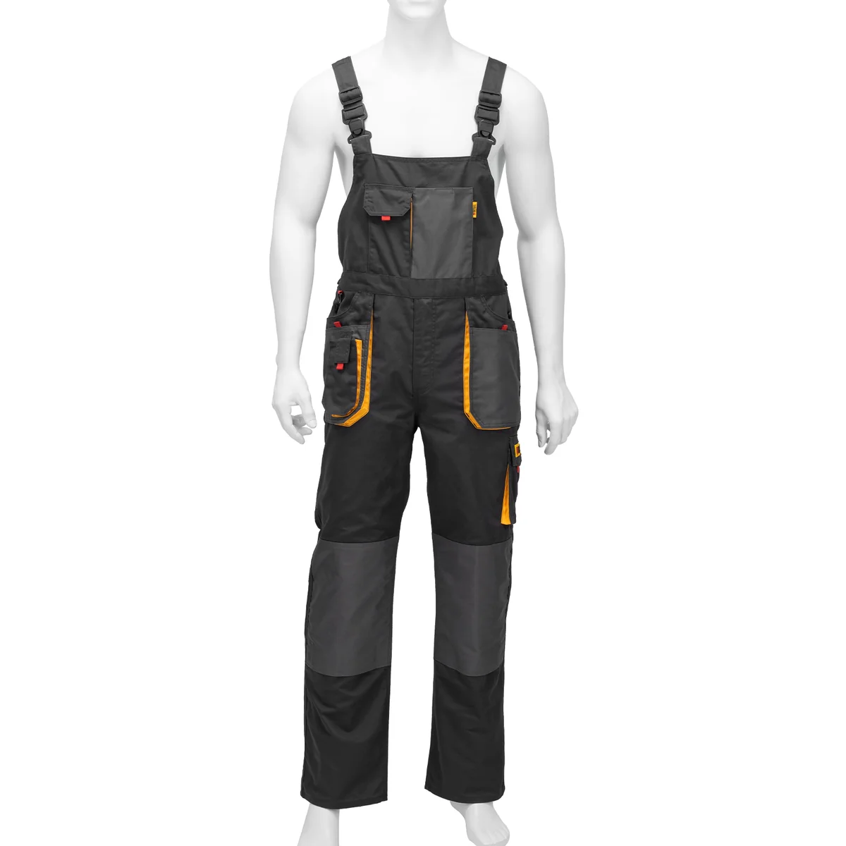 - Большое количество карманов — полукомбинезон снабжен специальными отделениями для инструментов, а в карманах с «липучками» можно разместить мобильный телефон, крепеж и необходимые мелочи.