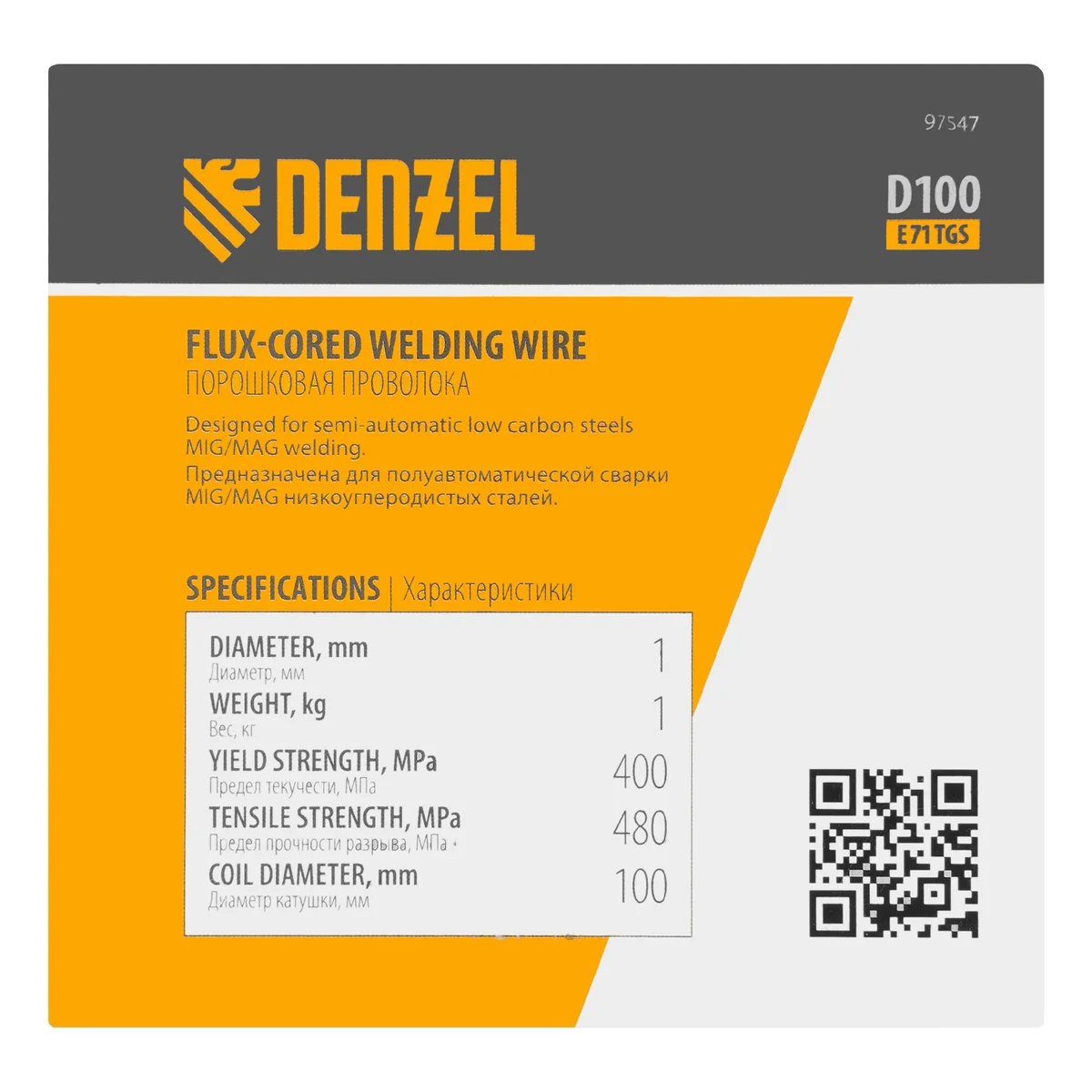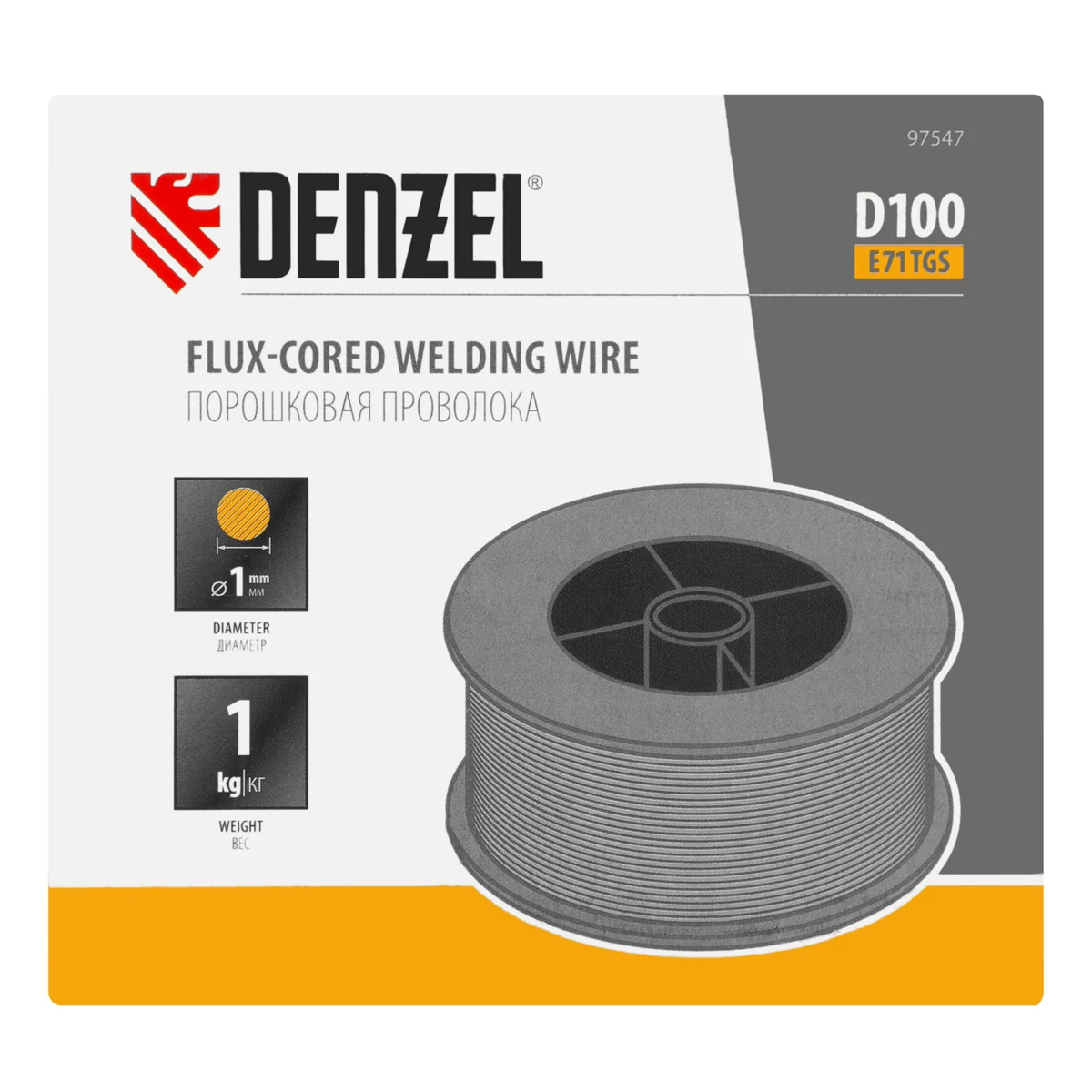 Порошковая проволока Denzel E71TGS 97547 диаметром 1 мм и весом 1 кг, на катушке типа D100, предназначена для полуавтоматической сварки MIG/MAG углеродистых и низколегированных сталей без среды защитных газов. Необходима профессиональным сварщикам, пригодится также частному мастеру.