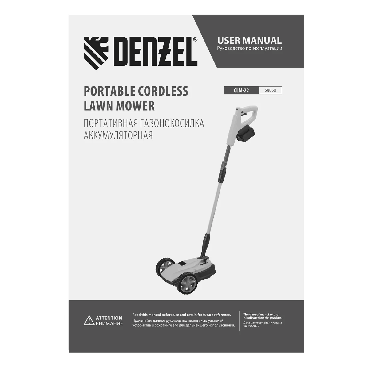 Портативная аккумуляторная газонокосилка CLM-22, Li-ion, 20В, 220 мм Denzel 58860