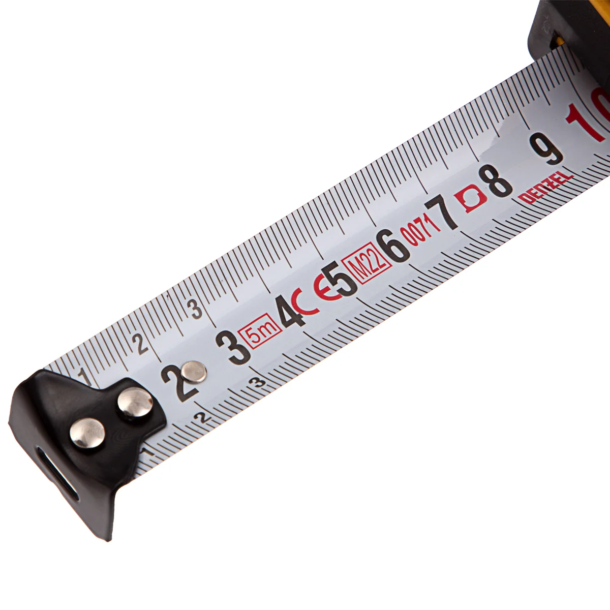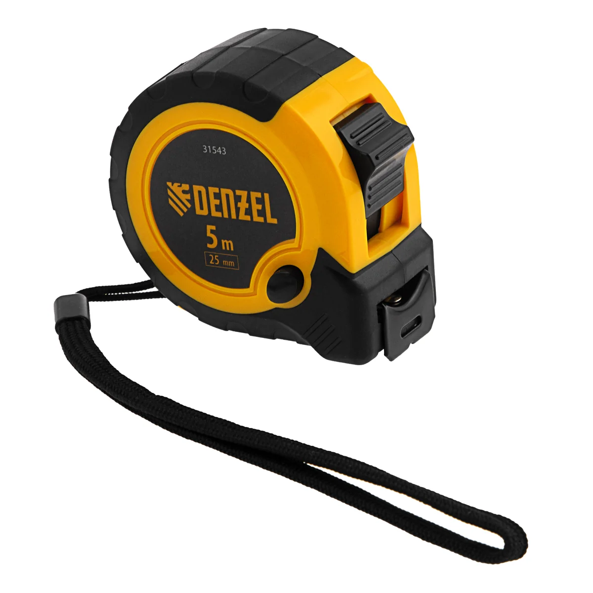 Рулетка Denzel 31543 в двухкомпонентном корпусе, с кнопкой-паузой, с полотном шириной 25 мм и длиной 5 м, используется для измерения расстояний и размеров предметов. Удобна для работы в труднодоступных местах. Стальная лента с эмалевым покрытием и защитной пластиной в месте крепления зацепа рассчитана на долгий срок службы. Рулетка будет полезна во время строительства и ремонта, а также пригодится в быту.ПреимуществаУдаропрочность — двухкомпонентный корпус из ABS-пластика и вставками из термопластичной резины устойчив к механическим повреждениям.Удобная эксплуатация — клавиша-фиксатор удерживает ленту в вытянутом положении, облегчая проведение измерений.Эргономичность — рулетка снабжена прочным ремешком для подвешивания на запястье.Дополнительные возможности — поясной зажим позволяет закрепить рулетку на ремне, чтобы освободить руки во время работы.Продуманная упаковка — открытый блистер позволяет осмотреть изделие перед покупкой.