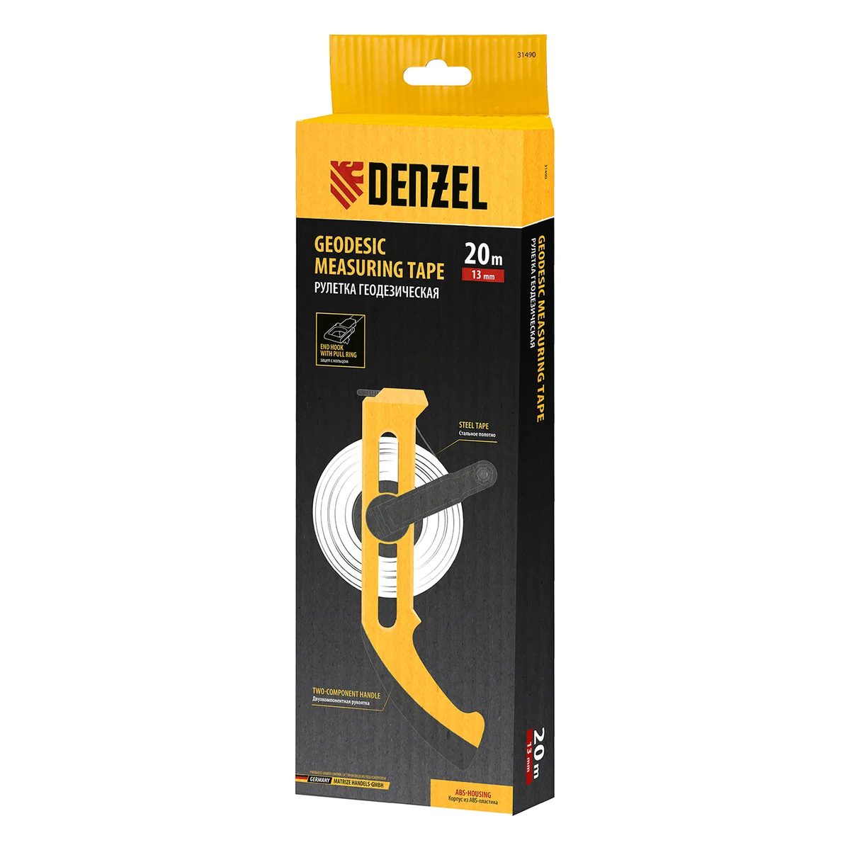 Рулетка геодезическая 20 м х 13 мм, открытый корпус, металлическая лента Denzel 31490