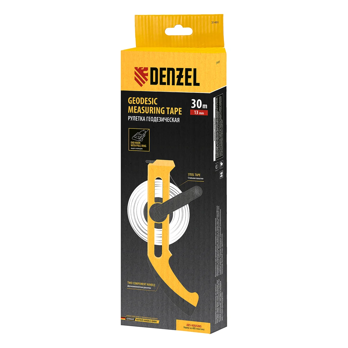 Рулетка геодезическая 30 м х 13 мм, открытый корпус, металлическая лента Denzel 31491