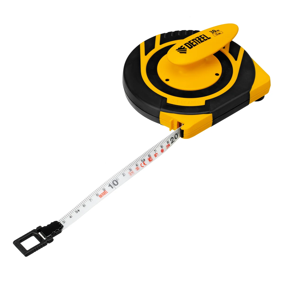 Рулетка геодезическая 30 м х 15 мм, закрытый корпус, фиберглассовая лента Denzel 31291