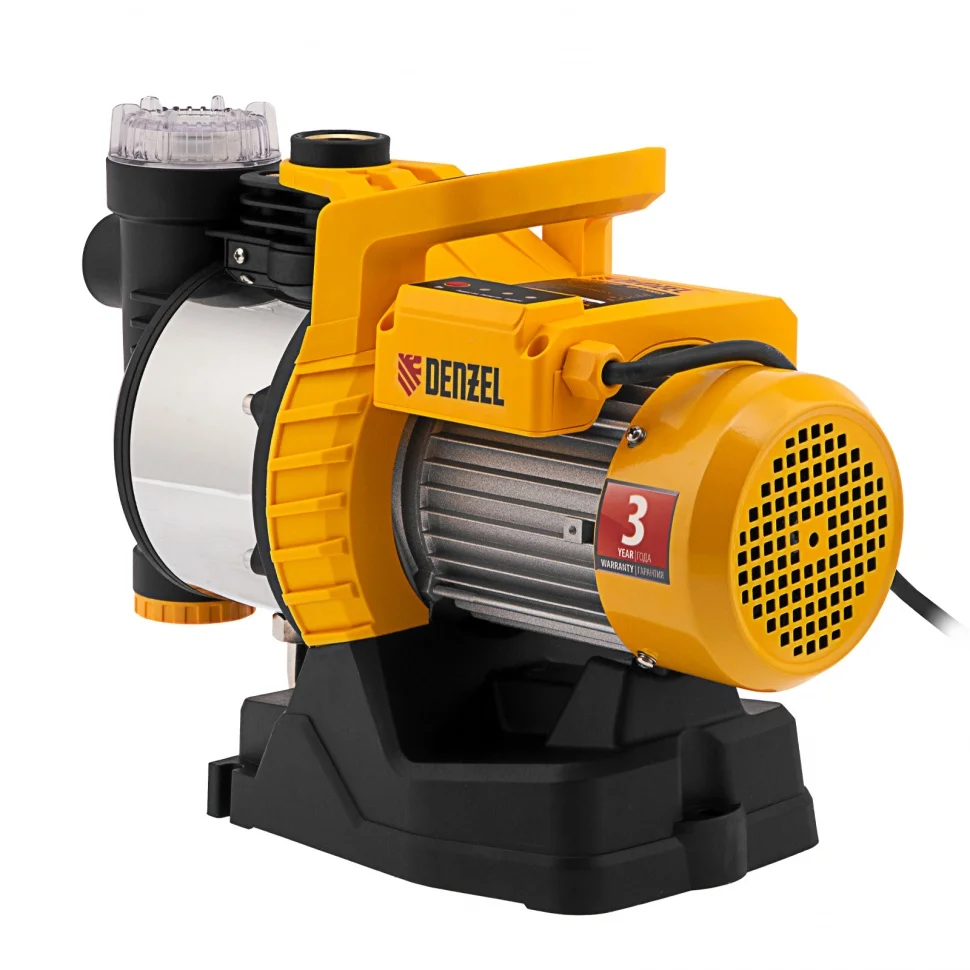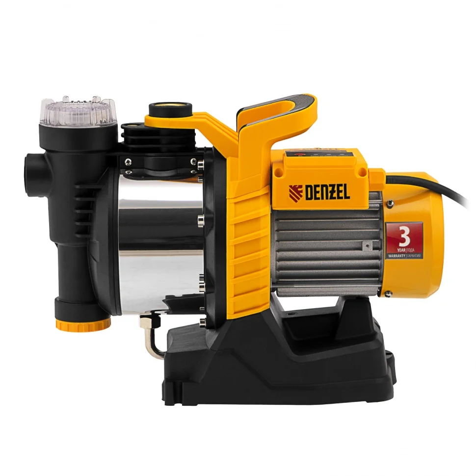 Садовый поверхностный насос Denzel GP1100SS используется для забора чистой воды из колодцев, емкостей и водоемов, а также для организации системы полива и водоснабжения на даче. Способен подавать воду на высоту до 45 м, поэтому его можно подключать к водопроводной системе для обеспечения стабильного напора. Осуществляет забор воды с глубины до 8 м со скоростью до 4000 л/ч, такой производительности хватит для снабжения нескольких водозаборных точек одновременно.ПреимуществаЗащита от сухого хода - отключение насоса после 30 секунд работы без воды.Встроенное реле давления (при наборе давления 4,2 бар, происходит отключение насоса, а при снижение до 1,2 бар – включение)Встроенный фильтр обеспечивает защиту насосной части от попадания частиц грязи.Широкая заливная горловина позволяет наполнять заборную магистраль быстро и удобно.Термозащита минимизирует риск поломки: двигатель отключается автоматически в случае перегрева.Торцевое уплотнение из карбида кремния и стальной вал значительно повышают ресурс и надежность насоса.Безопасное использование - токопроводящие части корпуса имеют двойную изоляцию.Удобство транспортировки благодаря наличию ручки на корпусе.На основании корпуса есть специальные ножки, которые обеспечивают устойчивость насоса.Гарантия 3 года.