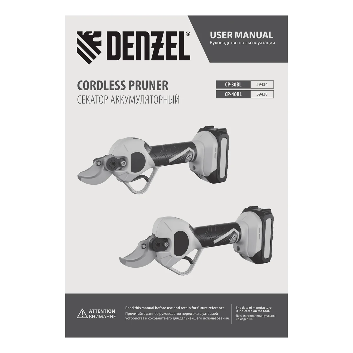 Секатор аккумуляторный, бесщет., CP-40BL, Li-Ion, 20 В, лезвия SK5 Denzel 59438
