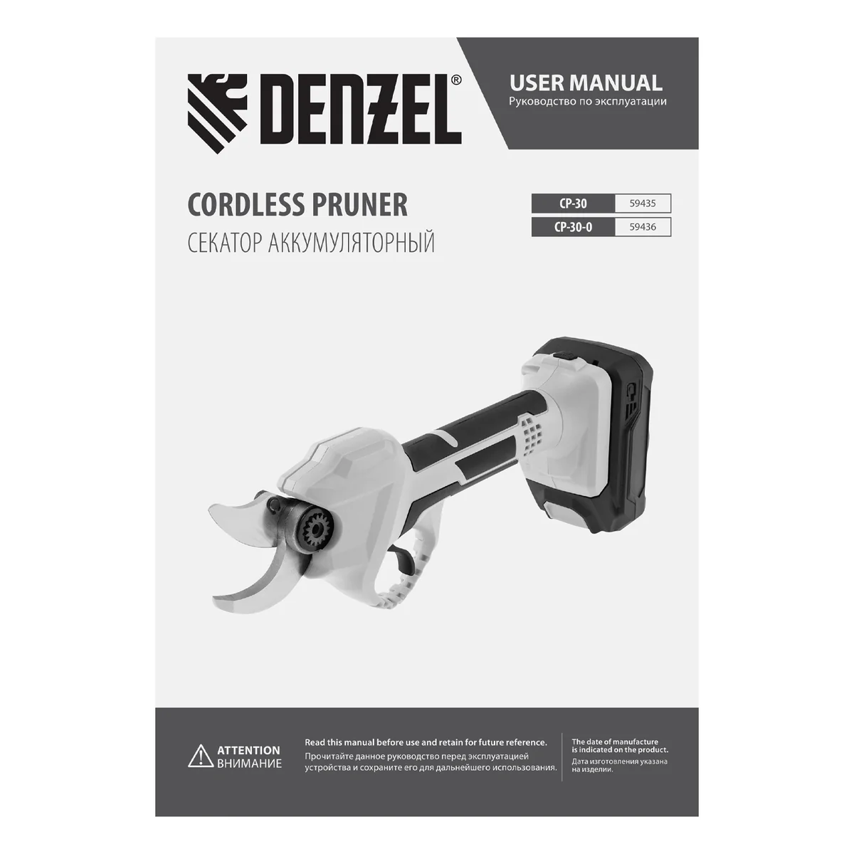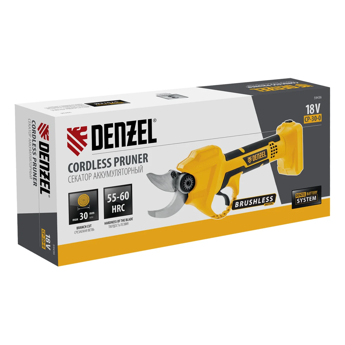 Секатор аккумуляторный CP-30-0, 18В Li-Ion Denzel 59436