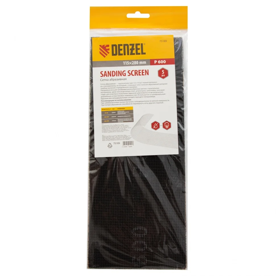 Абразивная сетка Denzel 75189, 115 х 280 мм, с зернистостью P 600, 5 шт. в упаковке, применяется для финишной обработки и придания гладкости зашпаклеванным поверхностям, а также твердой древесине и металлу. Она бережно снимает тонкий слой материала и лакокрасочного покрытия, удаляет ржавчину и заусенцы, сглаживает неровности. Абразивный слой обладает высоким ресурсом, т.к. зерна карбида кремния стачиваются медленно. Сетку устанавливают на ручные шлифовальные приспособления — бруски и сеткодержатели соответствующего типоразмера.ПреимуществаОснова сетки из прочного стекловолокна устойчива к разрыву.Полотно с сетчатой структурой не забивается отходами шлифования.Абразивное покрытие нанесено с обеих сторон, так что при необходимости сетку просто переворачивают и продолжают работу.Загрязнившееся полотно можно очистить легким постукиванием, что экономит время мастера.Упаковки из 5 штук хватит надолго.