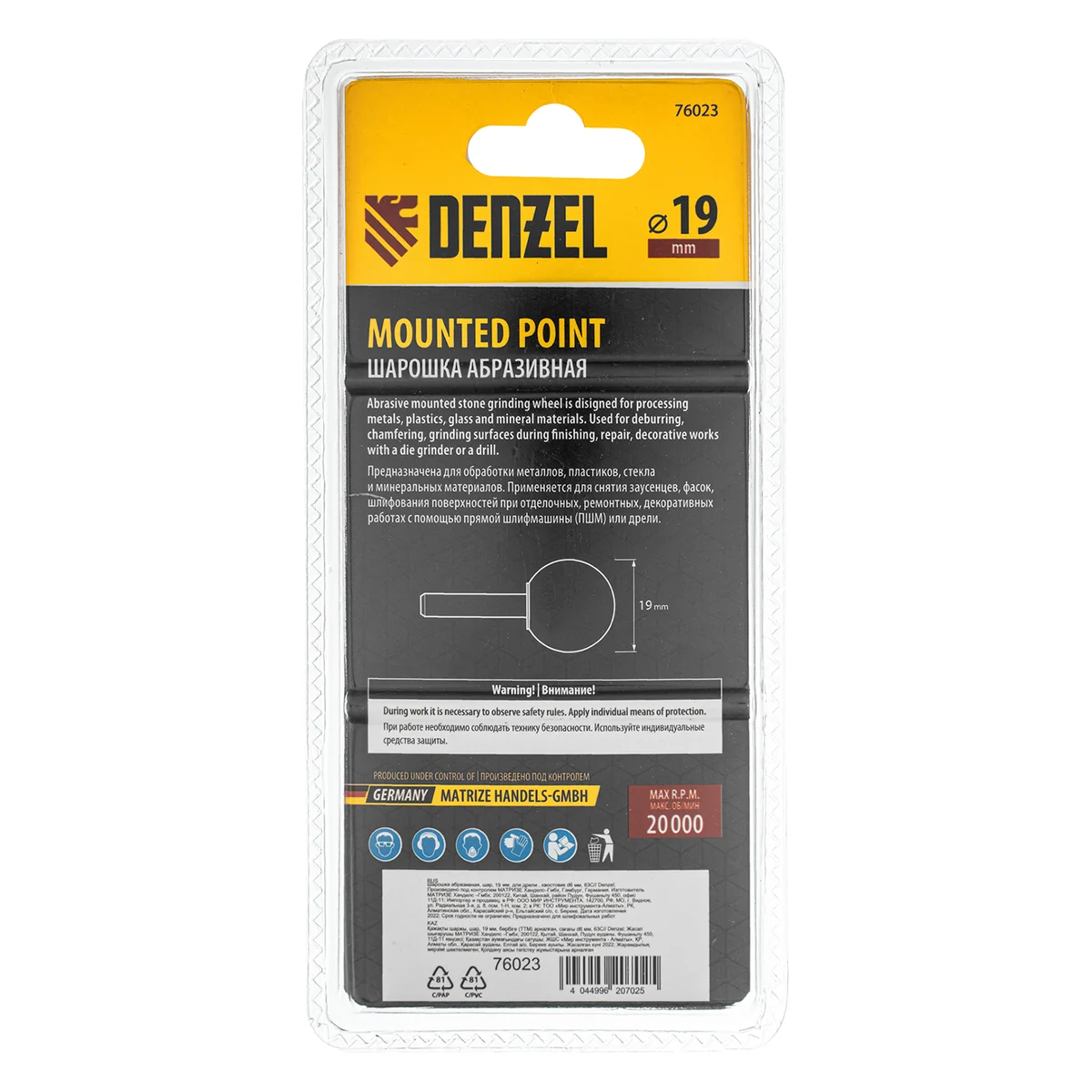 Шарошка абразивная Denzel 76023 с рабочей частью в форме шара диаметром 19 мм, с хвостовиком диаметром 6 мм, — оснастка для дрели, шуруповерта или прямошлифовальной машины (ПШМ). С ее помощью можно зачистить небольшой сварной шов, удалить заусенцы, обработать острые кромки, очистить небольшой участок поверхности от ржавчины или остатков лакокрасочного покрытия. Шарошка удобна для обработки деталей сложной формы. Пригодится в ремонтной мастерской, автосервисе, будет полезна при выполнении отделочных работ.ПреимуществаДолговечность — абразив из карбида кремния (63С) обладает в 2 раза большим ресурсом, чем оксид алюминия.Универсальность — шарошка подходит для обработки металла, пластика, различных сплавов, стекла, керамической плитки, натурального и искусственного камня.Простое использование — цилиндрический хвостовик подходит для стандартных патронов дрелей и шуруповертов, а также для ПШМ с цанговым зажимом.