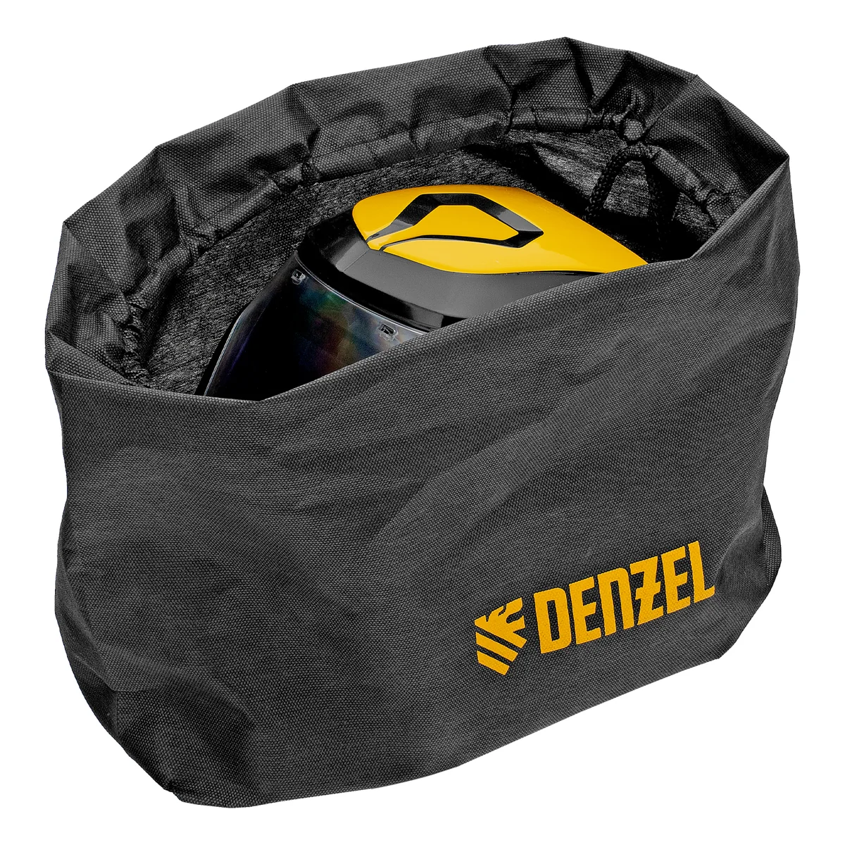 Защитный лицевой щиток (маска сварщика) Denzel F10 89719 со смотровым окном размером 100 x 96 мм, системой Real Color и функцией затемнения в диапазоне DIN 4-8/9-14, предназначен для защиты глаз, лица пользователя, области шеи и частично области плеч от искр, брызг расплавленного металла, а также инфракрасного и ультрафиолетового излучения. Используется во время проведения сварочных работ в различных режимах (MMA, MIG/MAG, TIG). 4 оптических датчика обеспечивают эффективную работу светофильтра. Благодаря системе «хамелеон» экран автоматически темнеет при поджиге дуги (время реагирования 1/25000 с) и светлеет после окончания сварки.