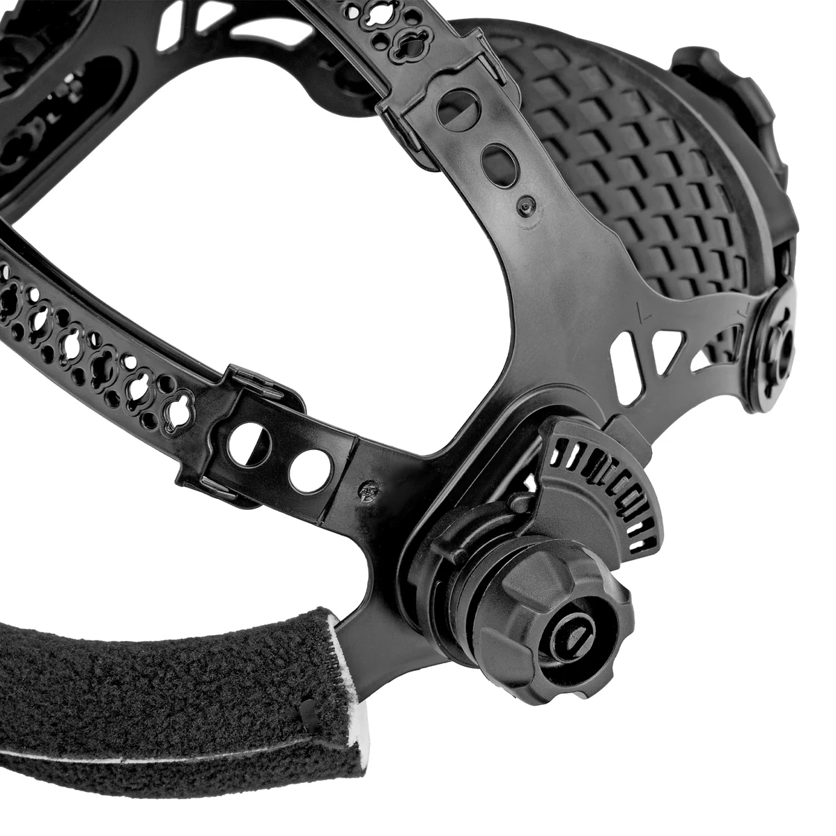- Эргономичность — щиток оснащен поворотной системой крепления вверх/вниз: при подъеме маски центр тяжести автоматически смещается для максимального комфорта во время использования.