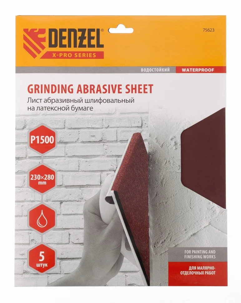 Шлифлист на бумажной основе Denzel Р1500 арт. 75623 применяется для выравнивания шпатлеванных и оштукатуренных поверхностей на основе гипсовых и известковых составов, а также для обработки дерева, металла, пластика. Абразив Р1500 с очень мелкими зернами легко справится с финишной обработкой поверхностей.ПреимуществаВысокая скорость работы — зерно оксида алюминия 1-го класса имеет острые грани и легко справляется с обработкой различных материалов.Бумажно-латексная основа — устойчива к растяжению и высоким нагрузкам, имеет гибкую структуру и высокую износостойкость.Водостойкий — шлифлист можно использовать для мокрого шлифования и очищать рабочую часть, промывая ее в воде.Удобная упаковка по 5 шт.Универсальность использования — устанавливается на вибрационную шлифмашину (плоскошлифовальную), а также в различные приспособления для шлифования соответствующего типоразмера, либо используется для ручной обработки.