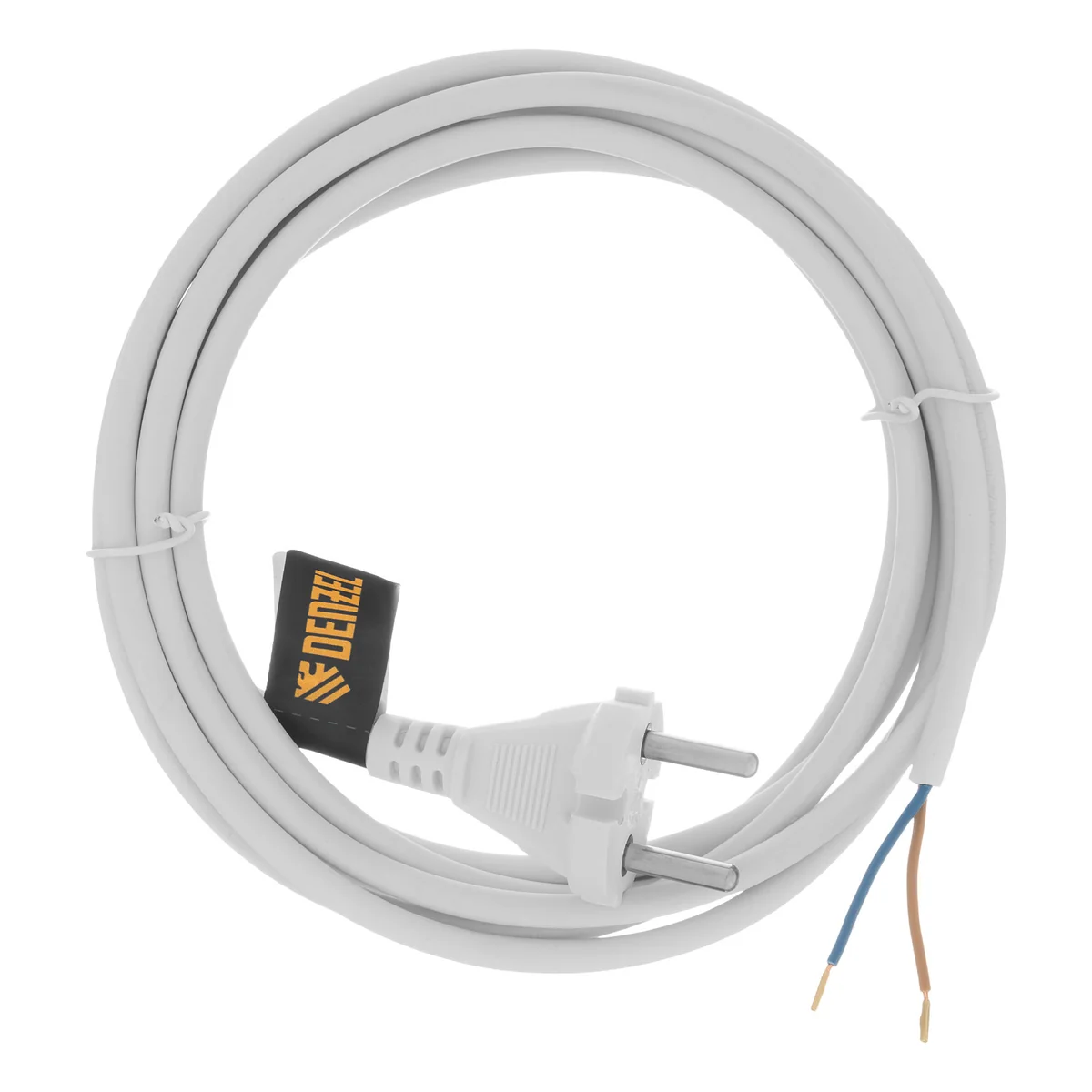 Белый сетевой шнур Denzel Energy Series 37664 с кабелем ПВС сечением 2 x 1 мм и длиной 3 м, с неразборной вилкой, предназначен для подключения к сети электроприборов мощностью до 3500 Вт. Для смотанного кабеля максимальная мощность потребителя составляет 1750 Вт. Шнур можно использовать для самостоятельного подключения прибора или замены вышедшего из строя провода. Сделано в России.