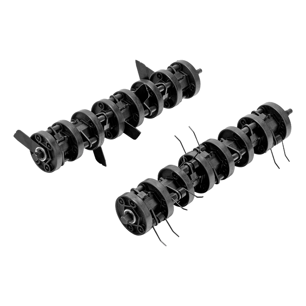 В комплект поставки включены сразу 3 насадки: 2 вала с пружинами и 1 вал с ножами. Вал с пружинами обеспечивает удаление сухой травы, мха и мелкого мусора с поверхности газона непосредственно перед аэрацией ножами, при этом не меняет структуру почвы и не причиняет вреда растениям. Вал с ножами деликатно прорезает поверхность газона, обеспечивая приток воздуха и влаги к корням растений.