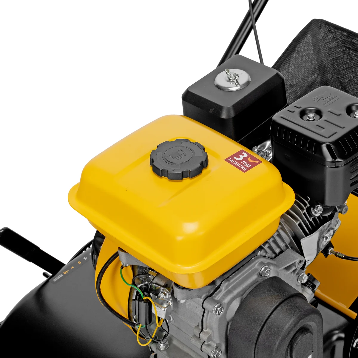 - Вместительный травосборник объемом 30 л — сетчатая ткань позволяет легко отслеживать количество собранной травы и мусора и легко очищается.
