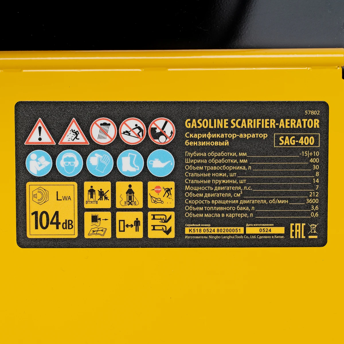 Скарификатор-аэратор бензиновый SAG-400, 212 см3, -15/+10 мм, 40 см Denzel 57802